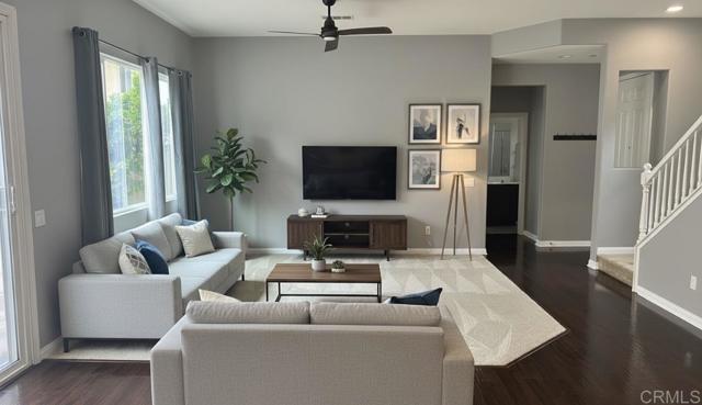 Beautiful Belleme townhome open space concept Living Room/Great Room/Family Room floorpan, fireplace, new wood vinyl flooring, beautifully upgraded kitchen, quartz counters tiled backsplash, renovated cabinets, spacious dining area-Central A/C/heat, laundry closet upstairs-Private enclosed yard with stamped concrete, 2/garage, Community pool/spa/playground-Convenient access to shopping, dining, freeways, & top ranking schools, Pet friendly!! see supplement remarks for more info. . The Kitchen Quartz Countertop with 15" backsplash, Sink and faucet. Stainless steel appliances; five burner Range with stove top griddle over the range Microwave, refrigerator, dishwasher machine & Installation In the Bathrooms, Shower fixtures Master bathroom, Shower fixtures upstairs bathroom, Fixtures faucets Master bathroom, Vanity Lights fixture Master bathroom, Fixtures downstairs, faucet, towel holder, paper holder, master towel holder, towel paper holder, Fixtures, Upstairs/second bath/ Towel holder, paper holder In the Bedrooms Upgrade, Ceiling fans with Lights each Bedrooms Flooring Upgrade, LAMINATE flooring in Master bedrooms and hallway (w/ ceramic bathrooms) NEW VINYL wood flooring in SECOND/THIRD bedrooms, VINYL wood flooring in stairs, LANDING, LIVING ROOM, dinning & kitchen. In the Windows Upgrade, ALL Windows have a ready KIRK Rod Brand accessories, ALL Window Blinds upgrade, Master and Downstairs bath with customize bath rod/white curtains . New painting throughout the house. Garage Door & Paint Upgrade, garage cabinets upgrade, epoxy garage floor upgrade.