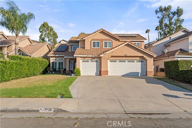 POOL HOME!!! *** Welcome to this beautiful two-story, 5-bedroom, 2.5-bath home situated on a spacious 8,712 sq ft lot in one of Jurupa Valley's most sought-after neighborhoods. Offering 2270 sq ft of living space, this property blends comfort, excitement, and curb appeal. Step into this bright and inviting home, where soaring ceilings and abundant natural light create an airy, open feel from the moment you walk in. As you enter the kitchen you will notice that it's well-equipped with granite counter tops, stainless steel sink and stainless-steel appliances, a wine fridge and lots of cabinet space with a beautiful view of the sparkling pool and spa. The home offers a convenient laundry room, a half bath and a full bedroom on the the main floor. The spacious living area with modern tile flooring, anchored by a charming brick fireplace for relaxing and enjoying those special moments. As you go up the stairs, the bedrooms provide privacy and relaxation. Other notable features include the NEW AC, NEW dual pane windows, New pump for pool, NEW water heater, and best of all 25 paid off solar panels providing you with free electricity throughout the year. Conveniently located in proximity to freeways, schools, parks, shopping, and the list goes on. This home is ideal for entertaining and everyday life.