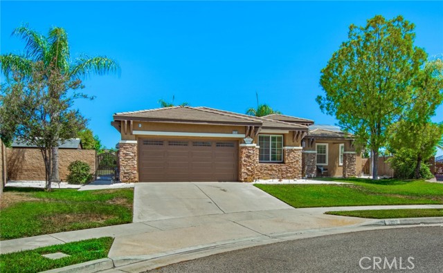 Excellent Cul-De-Sac location in the Community of Eagle Glen. Wonderful Single Level Home with Bright and Open Floor Plan with Tall Ceilings and an Abundance of Windows filling this Home with Natural Light. Comfortable Family Room with Wood Flooring, a Gas Fireplace and Entertainment Center. Family Room opens to Kitchen. Oversized Center Island overlooks the Family Room. Formal Dining Area and Living Room adjacent to Kitchen. Roomy Master Bedroom with a Large Walk-In Closet. Garden Tub and Glass Shower Stall in Master Bathroom along with a Dual Sink Vanity. Convenient Inside Laundry Room with Full Size Hook-Ups. Cool Central Air Conditioning along with Solar System. Attached Double Car Garage with Direct Access into Home and Long, Wide Driveway with more off street parking. Private Fenced Back Yard with Shady Covered Patio and Panoramic Views of the Mountains and City Lights. Close to Community Sports Park, Schools, Shopping, Freeway Access.