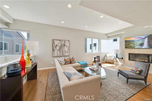 Stunning rear unattached condo on Poinsettia- a beautiful Corona Del Mar tree lined street. Built in 2005, this Strickler designed home is exceptionally light and bright, with no large homes on either side. With numerous windows, the ocean breeze and sun pour through this freestanding back unit. Enjoy the contemporary architectural details throughout as well as hardwood and travertine floors throughout the main floor. The completely upgraded kitchen includes stainless appliances, and flows perfectly into the living room with high ceilings as well as a cozy fireplace. Cook and entertain simultaneously! Large master suite is connected to the luxurious master bath by a duel fireplace. Enjoy the impressive separate soaking tup and shower. Spacious second bedroom, and full bath is upstairs with glass tile countertops. Direct access to the rooftop deck with peek-a-boo ocean views by day and twinkling lights by night. Enjoy this amazing Corona Del Mar condo and all the Village has to offer!