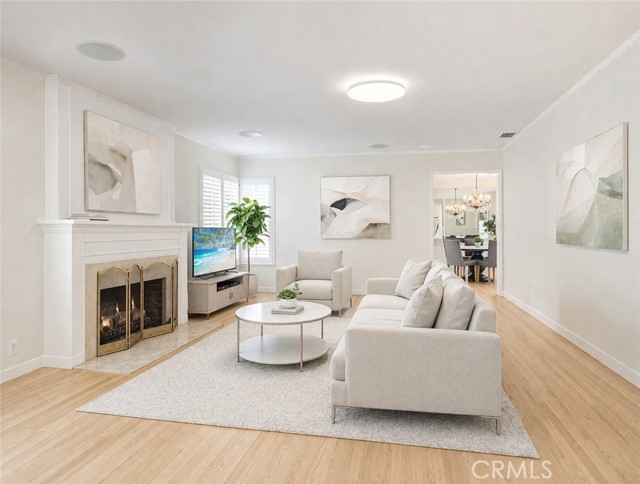 Welcome to this exquisite single-level home nestled in a tranquil community, where luxury meets comfort. The meticulously upgraded residence boasts a gated courtyard and a grand double-door entry, inviting you into a haven of sophistication. Spanish marble floors grace the interior, illuminated by a vented/lighted skylight that bathes the space in natural light. The well-designed layout features an abundance of built-ins and storage. A double-faced fireplace graces both the dining/living area and the primary suite, creating a warm and inviting ambiance. The primary suite is a retreat with a spacious ensuite and plush carpeting. Recent upgrades include new air conditioning, fresh painting inside and outside, and a beautifully landscaped front yard. Additional highlights include epoxy flooring and storage in the garage. Conveniently located near the stunning Monarch Beach, library, shopping, dining, and within an award-winning school district, this home offers the perfect blend of elegance and convenience for a refined lifestyle. (4th bedroom does not have closet, currently used as an office)