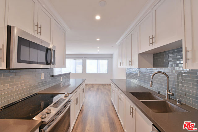Corner penthouse unit! Top floor unit featuring 2 bedroom and 2 full bathrooms. Spacious floorplan with separated bedrooms great for roommates or for having both a primary bedroom and guest bedroom/office. Modern concept kitchen features stainless steel appliances, Caesarstone countertop and glass tile backsplashes. Recessed lighting, beautiful flooring, and a walk-in closet. Washer/dryer in unit. Two tandem parking spaces in a secure gated garage. Small pets allowed. Centrally located and convenient to Robert Burns Park, Larchmont Village, Hollywood, and Koreatown. Available for move in November 1, 2025.
