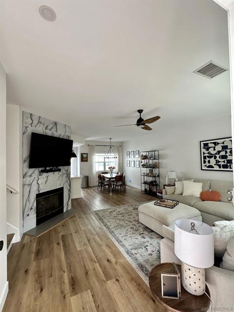 Welcome to this stylish 2-bedroom, 2.5-bath end-unit townhome located in the highly desirable Woodlands Ivy community of Fire Mountain. Thoughtfully updated throughout, this home combines modern convenience with coastal comfort—just 3 miles from the beach and minutes to downtown Oceanside, Carlsbad, and Camp Pendleton. Enjoy a remodeled kitchen featuring new appliances, including a dishwasher, disposal, stove, oven, fridge/freezer, and wine fridge, plus a remodeled walk-in pantry with motion-sensor lighting. The laundry area boasts a new washer, dryer, and deep freezer, while added touches like a built-in hallway linen closet, new fans, door handles, and keyless entry locks elevate everyday living. Additional upgrades include new HVAC ductwork and a whole-house attic fan, a new water heater, softener, and filtration system, and fresh interior paint. Comfort meets function with connected bidets in both upstairs bathrooms and a hot-water bidet on the first floor. Complete with garage shelving and a wall-mounted TV, this home is move-in ready and perfectly positioned near shopping, dining, and scenic coastal trails—offering the ideal blend of modern living and beachside convenience.
