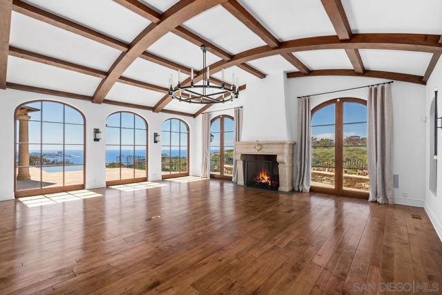 A serene setting of exceptional privacy and beauty awaits at this extraordinary North La Jolla estate, where sweeping views of the ocean, canyon, and La Jolla Cove create a priceless backdrop. Quality craftsmanship and a breathtaking design aesthetic define the luxe interior, which offers 3 en suite bedrooms plus an optional 4th, a climate-controlled wine cellar, sauna, and walls of windows showcasing the surrounding scenery. The light-filled foyer introduces soaring beamed ceilings with skylights, antique herringbone pavers, and double iron doors enhancing the inviting indoor-outdoor flow. Expansive entertaining spaces include a voluminous living room crowned by a barrel vault ceiling, a formal dining room overlooking lush greenery, a fully equipped chef’s kitchen with custom cabinetry, and a family room/library with cathedral ceiling, abundant bookshelves, and one of five fireplaces. Each bedroom boasts a spa-like bath, including the private primary retreat. A large flex space with its own bath and sauna could serve as a 4th bedroom. Outdoors, a sprawling stone patio with fireplace and infinity-edge pool invites effortless enjoyment of La Jolla’s year-round climate. Situated on a cul-de-sac in the Upper Shores with convenient access to beaches, UCSD, shops, and UTC. Available immediately, unfurnished, at $25,000 per month with a one-year lease.