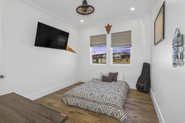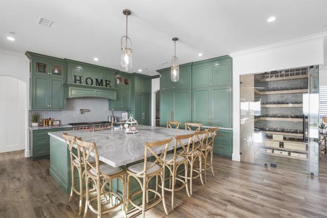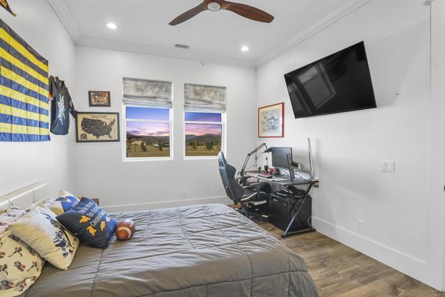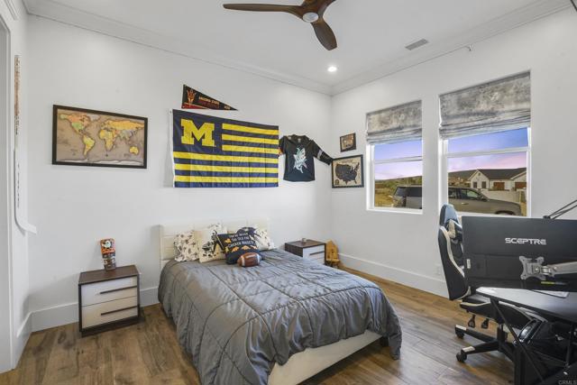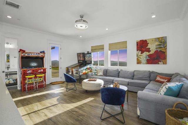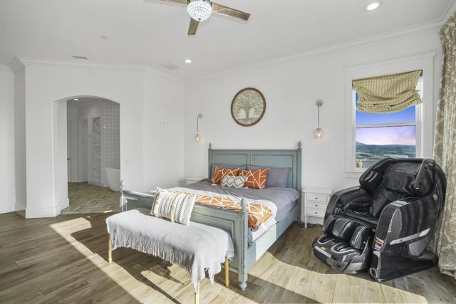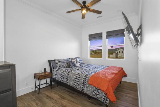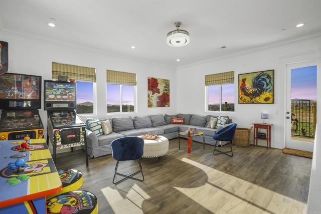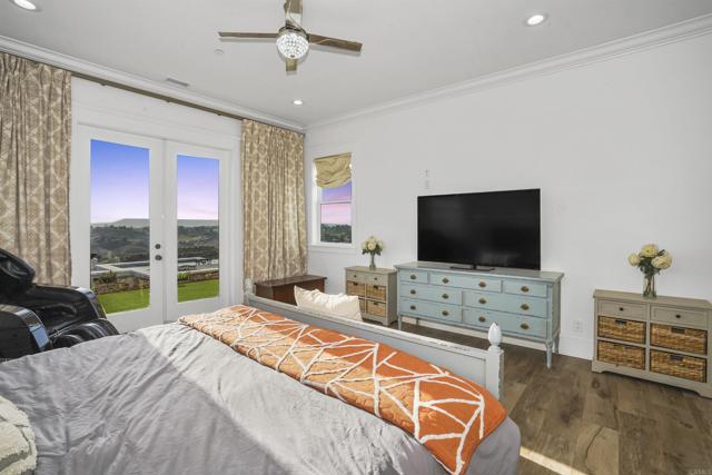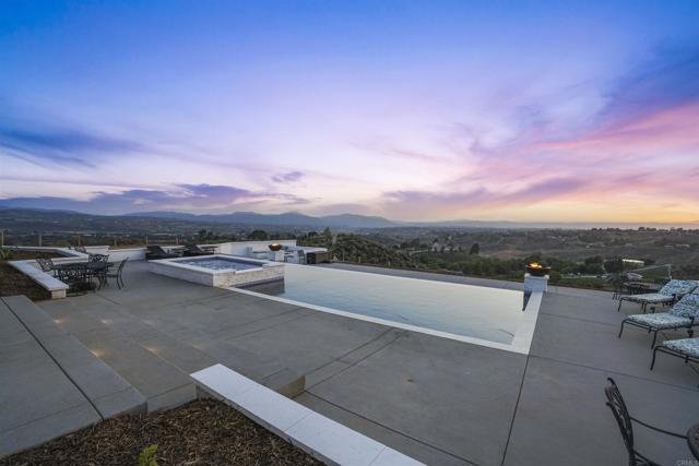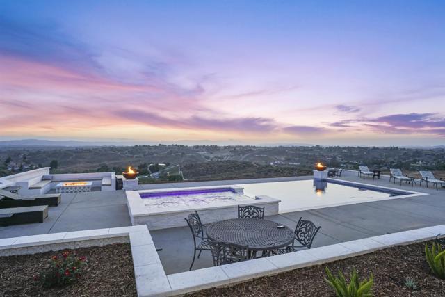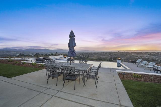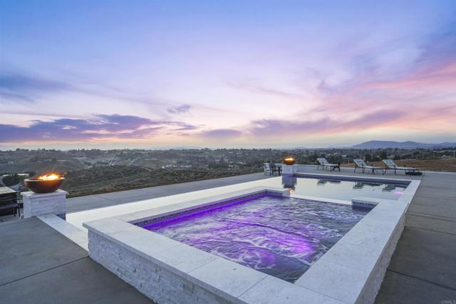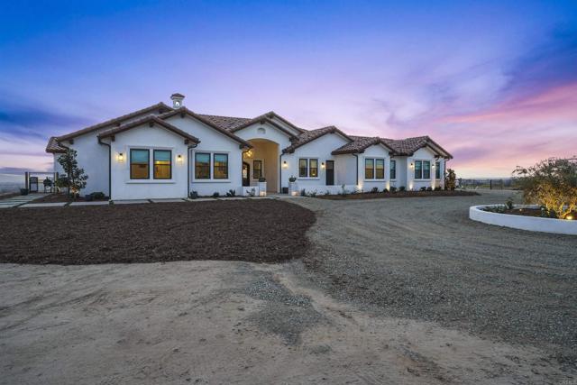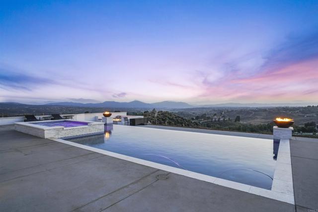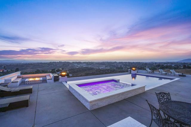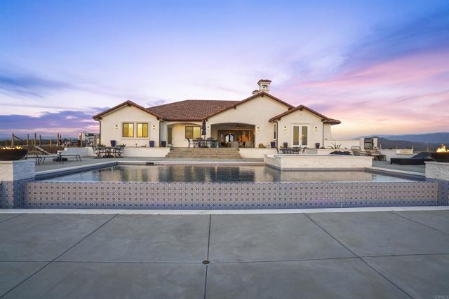 Experience a rare combination of luxury, privacy, and PANORAMIC VIEWS in this gated and gorgeous, nearly brand new and completely custom Temecula Wine Country home. The views from this property cannot be beat! The sun sets at the back of the property every night, hot air balloons are up in the sky every morning and the snow capped mountains are a beautiful sight in the winter. This amazing property boasts 5.05 acres of usable land to add on nearly anything that you can imagine… a guest house, horses, vineyards, dirt bike track… the sky is the limit with this property! This house has many upscale amenities including a 4k home theater with a 135 inch Stuart screen, 8 power-reclining stadium seats, a custom glass wine cellar for the wine lovers, gorgeous crown moulding and woodwork throughout, a mother-in-law suite with its own front entrance, bath, family room and kitchenette, a gourmet kitchen with a 60” range, two dishwashers, built-in espresso machine and so much more. The three car garage has two EV charge ready ports inside and outside the garage is plenty of parking for RVs with two sets of full hook ups. The large “la cantina” doors open up to bring the outdoors into the house. Once you step outside you will fall in love with the backyard. The back patio has a built in gas fireplace and two built-in infrared heaters to relax in comfort all year long. The backyard offers a beautiful infinity pool with an oversized spa, fire bowls and a large gas fire pit with built with seating. All of this is surrounded by amazing panoramic views of Temecula and gorgeous sunsets every night! The seller has approved permits for a 40 foot long cabana with fireplace and outdoor kitchen/BBQ. NO HOA or Melo Roos. For buyers in search of a luxurious retreat with exceptional build quality and plenty of space to make your own, this maybe the best opportunity seen in wine country in many years.
