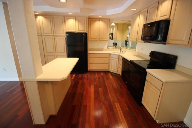 Gated On top floor with elevator,NO Street Noise END Unit backing to trees.Wood floors and new carpet in bedrooms.Upgraded chef dream kitchen with custom built cabinets.Large 2 bedrooms on opposite ends of condo for privacy.2 Full bathrooms and lots of closet space in Each bedroom.Light and Bright, ONE GATED COVERED parking space! AC unit in living room.Community laundry rooms.Water/Sewer and trash included in rent.Complex Amenities:Pool/Spa, Gym .Close to publlic transportation,YMCA,Fashion valley mall