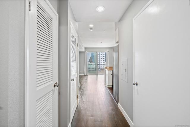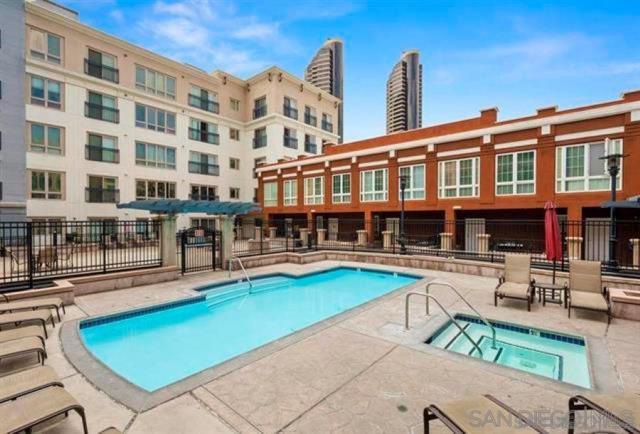 Rarely available, TOP FLOOR, LIGHT, BRIGHT, AIRY, & IMMACULATE studio, 1 bath, 1 parking, in the heart of the Marina/Gaslamp. You will appreciate the abundance of natural light, and the bright, airy vibe throughout this spacious unit. Well-appointed finishes, featuring a chef's kitchen with stainless appliances, and granite countertops, provide the perfect space to whip up culinary delights and entertain guests. Washer/dryer and A/C. WALKING DISTANCE TO EVERYTHING: Petco Park, Little Italy, the Marina, bars, restaurants, boutiques, the train, trolley, airport, freeways, and more. Building features pool, spa, sundeck with built-in gas BBQ. This won't last!