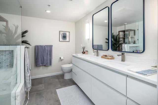 Discover refined urban living at the Breeza community in vibrant Little Italy! This exceptional residence has been masterfully reimagined by a renowned San Diego architect, delivering sleek modern design and a contemporary ambiance throughout. Offering an expansive 1,999 sq. ft. — the largest floor plan in the building — this home provides a downtown experience that feels like a private single-family retreat. The stunning primary bathroom has been completely remodeled with Scavolini cabinets, new mirrors, upgraded lighting, an expanded shower, and designer plumbing fixtures. Enjoy breathtaking bay views, two private balconies, a full-size laundry room, and two side-by-side parking spaces. Perfectly situated between Little Italy and the waterfront, the location offers unbeatable walkability to dining, shopping, and the marina. Breeza is celebrated for its lush, award-winning landscaping and resort-style amenities, including a rooftop terrace with panoramic views, a heated pool and spa, a resident lounge, fitness center, business center, community Wi-Fi, and on-site professional management. Explore the virtual tour for a closer look at this remarkable lifestyle opportunity!