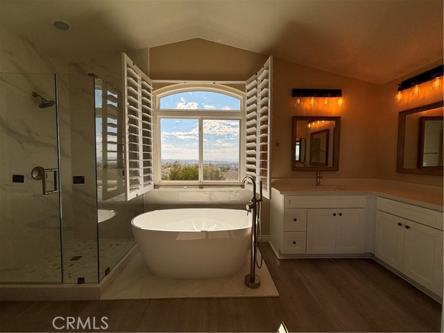SPECTACULAR VIEWs of Ocean, City Lights and Catalina Island in the charming hillside community of Foothill Ranch. Five bed three bath plus one loft, located in a prime cul-de-sac lot on a quiet street. Recent upgrade with total spent over $88,000. Fully new remodeled kitchen with brand-new white shaker cabinets/quartz countertops/ appliances / new heater. All bathrooms upgraded with brand new vanities and quartz countertops. Brand new vinyl plank flooring throughout. This home features a desirable bedroom and full bath downstairs, Four bedrooms and three full bathrooms plus a large bonus room upstairs, and an attached 3-car garage with spacious overhead shelves. The gourmet kitchen opens to the backyard patio with tremendous evening city lights. Enjoy indoor/outdoor dining, and the formal living room & dining rooms exquisite interior architecture. The family room has customized built-in media center with bookcases and a gorgeous fireplace with custom rod iron gate. Master Suite offers vaulted ceilings, dual vanities, spacious walking closet, and spectacular Catalina views. This beautiful home also offers upgraded crown molding, baseboards, plantation shutters, dual panel windows, ceiling fans, recessed lights, and more. And ideally located near the Blue-Ribbon Elementary School, local restaurants, shops, hiking and biking trails, community pool, parks, 241 toll roads, the 5 Freeway, and Irvine Spectrum Center. Low Tax! Low HOA Fee!