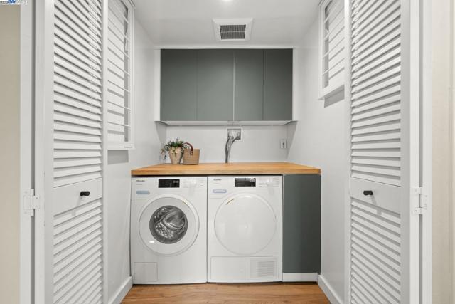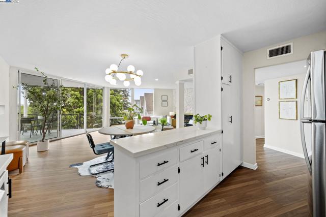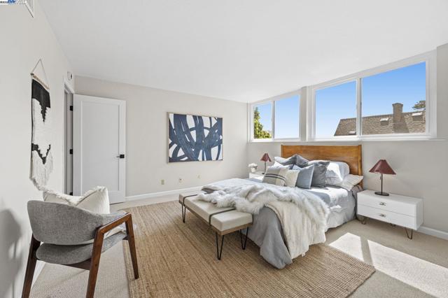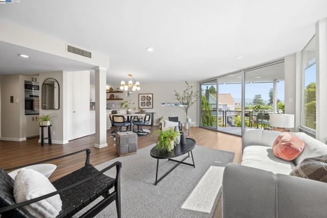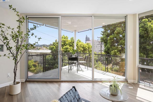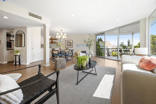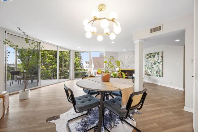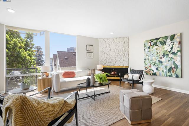 Tucked into a boutique, mid-century, elevator building with just three units, this nearly 1,700-square-foot, unique condo lives more like a single-family home. The main living area's floor-to-ceiling windows make their statement. Natural light floods the open-concept space, where a beautifully updated kitchen flows seamlessly into the dining and living areas. You'll love the indoor-outdoor feel that comes with your own view balcony, large enough for sipping coffee or hosting dinner parties. The ample primary suite includes a renovated bath as well as a sizable bonus room that adapts to however life unfolds—home office, exercise space, playroom, creative studio. Two more bedrooms and a full bath complete this zone of the home. Central A/C, an EV charger and in-unit laundry round out the amenities that make daily life effortless. And SB326 balcony and stair work is complete, so you can focus on enjoying your new home. This home is perfectly positioned in Adams Point's sweet spot—Lake Merritt's Saturday Farmers' Market becomes your weekend ritual, Grand Lake's dining scene is your backyard, and both Whole Foods and Trader Joe's solve the grocery equation. It's the kind of Oakland address that delivers equal doses of urban convenience and neighborhood charm.