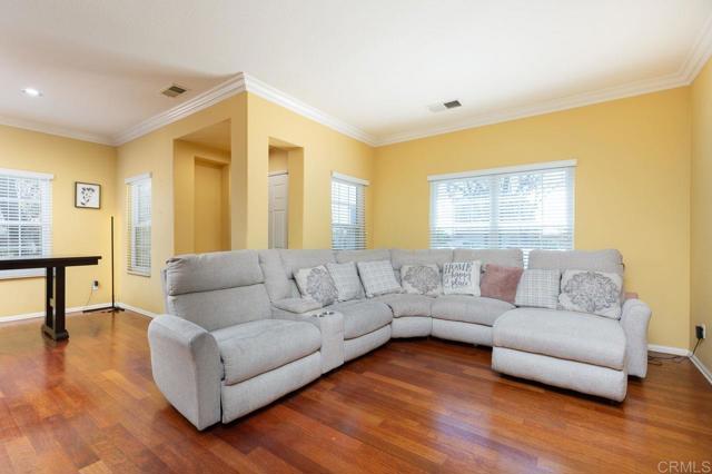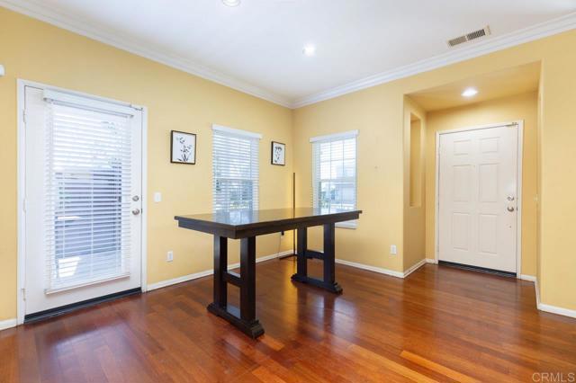 Charming 3-Bedroom Home in Otay Ranch! This 1,649 sq. ft. home in a gated community and sits on a private corner lot. A welcoming front porch, open floor plan with wood floors, a cozy fireplace, and elegant crown molding. A charming yard perfect for relaxing or entertaining. Upstairs, enjoy a spacious loft which could be converted into a fourth bedroom, convenient laundry room, and a nice size primary suite with double sinks, a separate shower, sunken tub, and walk-in closet. Solar panels make this home energy-efficient, central AC, two-car garage with built-in cabinets, community pool, clubhouse, spa, parks, and low HOA fees add extra convenience. This home is located within walking distance of top rate schools and close to shopping and dining, this home offers both comfort and accessibility.