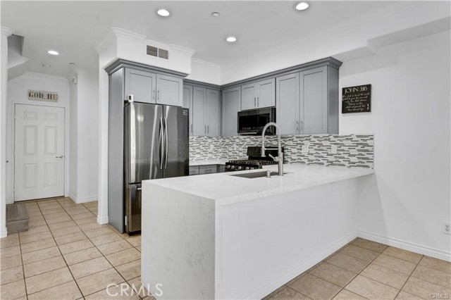 Tastefully remodeled, two-level townhome in gated community. Built in 2007, this remastered home boasts an open floor plan, 3 large bedrooms, 2.5 baths, 2-car attached garage. As you enter through the front door, you will encounter the living room with a cozy fireplace. New kitchen has quartz counter tops, elegant cabinetry with mosaic backsplash, and breakfast counter. Double french doors in dining room invite you to the front porch, perfect for entertaining. On the second floor, you are greeted with a spacious loft that can be a play, work, relaxation space or temporary guest quarters. Large master bedroom has walk-in closet with built-in organizers. Master bath has contemporary mosaic designs, dual-sink, a standing shower and separate tub. Second and third bedrooms are also large, with sliding glass mirror doors. Wood floors, classic baseboards, new electrical switches and much more. Neutral and inviting. Lease includes refrigerator, washer and dryer. Urban lifestyle with a small town feeling, the home is only minutes from Downtown Azusa, and borders the City of Covina. Also adjacent to schools, freeways, places of worship, bus stops, and shops. Come home to our your own oasis.