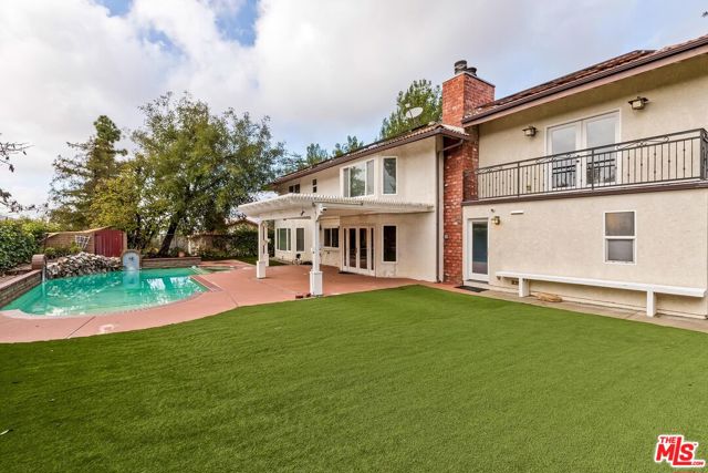 Lovely and spacious lease property in sought after Mulwood Calabasas location boasting 4 bedrooms, 4 bathrooms, pool and spa. Walking distance to all three award winning schools of the L.V.U.S.D. Beautifully landscaped w/ Large turf yard space and gardens front and back. Huge upstairs family room with 3 bedrooms and 2 baths, 1 bedroom and 2 bath downstairs. Laundry room off garage w/ attached bathroom for pool use. Lots of parking. Home has some views of the hillsides . Contact agent for information on showing times and days.