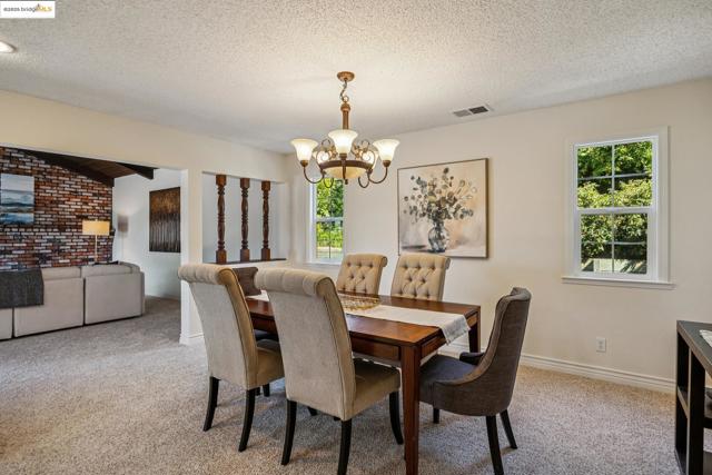 Welcome to 839 Coral Drive, a beautifully maintained two-story home in the Viewpoint neighborhood of Rodeo. This inviting residence offers comfort, style, and thoughtful updates throughout. Featuring five spacious bedrooms and three full baths, each with mirrored closet doors, the home provides plenty of space for family and guests. The living room is warm and welcoming with a cozy fireplace, while the open kitchen boasts a tiled counter that invites gathering and conversation. A formal dining room flows seamlessly into the expansive family room, complete with a second fireplace and sliding glass door that opens to the backyard patio—perfect for entertaining. The outdoor spaces are a true highlight, with a large landscaped backyard that includes a gazebo, tool shed, newly installed lawn, and a variety of fruit trees, complemented by mature trees and rock features in the front and back yards. Recent upgrades ensure peace of mind and modern comfort: brand new carpets, a brand new roof, a new A/C unit, and a new garage door for the spacious two-car garage. The freshly painted interior adds a clean, move-in ready touch. Conveniently located just minutes from freeway access, shopping, cafes, and restaurants.