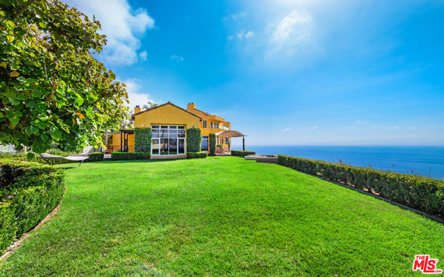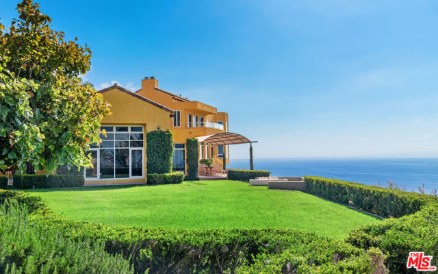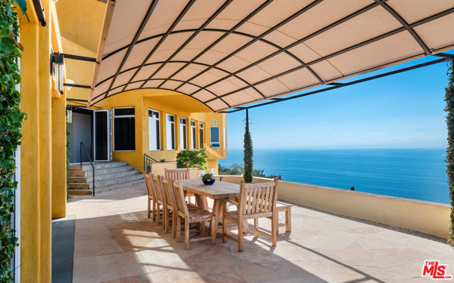 This private and gated adobe-style home offers sweeping ocean views and the valley below. The meticulously manicured grounds include a covered seating area on the patio and an adjacent lawn, ideal for entertaining. A firepit area and a resort-style pool with a waterfall complete the outdoor space. Inside this home is a large living room bathed in natural light from a multitude of windows and patio doors that envelop the enviable views of Malibu. High ceilings, hardwood flooring, built-in speakers, and a cozy fireplace provide ambiance in the living room. Granite countertops, Scandinavian-style cabinetry, and commercial-grade appliances outfit the upscale kitchen. With a Viking range and double oven, plus an additional oven, and a walk-in pantry, this kitchen is equipped to serve large gatherings of family and friends. This spacious home boasts a grand owner's suite plus four additional bedrooms. The owner's suite is outfitted with a stone fireplace, dual walk-in closets, and three sets of French doors that lead onto the expansive balcony that showcases sweeping views of the Pacific Ocean. The suite features dual bathrooms, a sauna, large walk-in, resort-style showers, and a bidet. Off the main bedroom is a private office featuring built-in cabinetry and a desk, plus access to the balcony. The four additional bedrooms are ample and two have ensuite baths and ocean views. This home also features a fully functional theatre room directly off the main living area, 220v power, a multi-zone A/C system, an alarm system, power shades, and a sprinkler system. Schedule your private showing today.