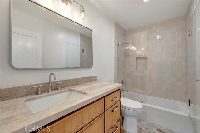Welcome to Pacific Ranch! This newly remodeled upstairs corner unit offers 1,120 square feet of stylish living space with a serene setting surrounded by mature trees. Inside, you’ll find gorgeous hard-surface flooring throughout and an open floor plan that highlights a stunning remodeled kitchen with sleek quartz countertops, perfect for both everyday living and entertaining. The inviting living room features a cozy fireplace and access to a private balcony. The home offers two spacious bedrooms and two beautifully upgraded bathrooms, including a private primary en-suite with its own balcony. Set within the sought-after, guard-gated community of Pacific Ranch, residents enjoy resort-style amenities including a pool, spa, and lushly landscaped grounds. Ideally located just moments from downtown Huntington Beach, the pier, and award-winning schools, this home offers the ultimate combination of comfort, convenience, and coastal charm.