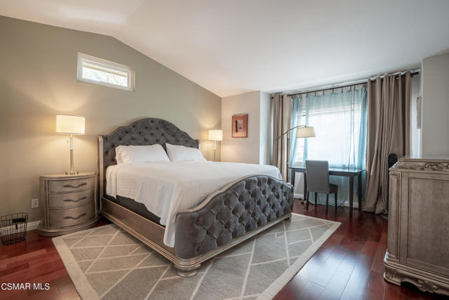 FURNISHED Capri End-Unit 3+3, Spacious and Open Floorplan w/Lush Private Patio. Large Living Area w/Fireplace and Vaulted Ceilings. Large Formal Dining, Cook's Kitchen w/Newer Appliances & Cookware. One Large Bedroom Downstairs w/Full Bathroom Downstairs too. New Dual-Pane windows help control temperature and keep inside Serene. Big Master Upstairs w/Private Bath, Dual Vanity and Soaker Tub w/Shower Stall plus Third Bedroom Up and Hall Bathroom. Newer Paint, Hardwood Floors, many Recent Upgrades, Piano, Direct Access 2-car Garage, Washer & Dryer, AC, steps to Guest Parking, Neighborhood Pools, Spas, Tennis Courts and Green Belt/Park in Oak Park Unified School District right across from Red Oak Elementary, close to Shopping, Open Space and 101 Fwy. See it Today! FULLY FURNISHED Month-to-Month OK