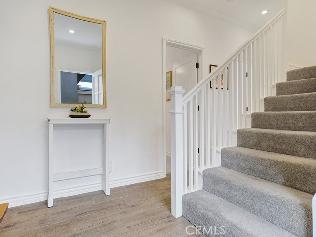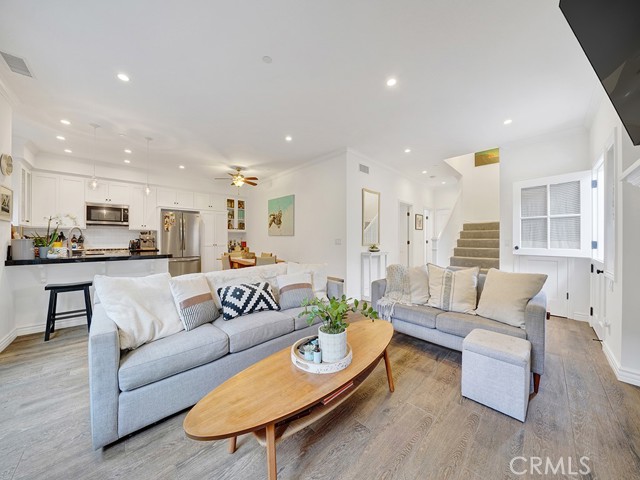 Nestled in the heart of San Clemente's illustrious Spanish Village by the Sea, this light-infused townhome serves as the quintessential beach retreat. Relish in breathtaking panoramic ocean vistas from the picturesque rooftop terrace, as the sun dips beneath the horizon, casting a serene ambiance over this three- bedroom, and three-and-one-half bathrooms. Boasting an array of upgrades, interiors of approximately 1,745 square feet are characterized by numerous upgrades such as crown molding, wide plank ceramic flooring, and a sophisticated designer kitchen complete with top-tier stainless steel appliances, farmhouse sink, and bar seating. Step from the cozy living/dining area, warmed by the fireplace and featuring glass sliding doors, onto the outdoor patio, a perfect setting for either entertaining, barbecuing, or relaxing in the soothing ocean breeze. Rounding out the main level, guests enjoy a light- filled bedroom with an ensuite bath, garage access, and half bath. The second level is dedicated to a spacious family room and 2 additional bedrooms including the primary suite showcasing marble countertops, soaking tub, and dual vanity sinks. Enjoy the convenience of a premier location, mere minutes from world-class beaches, San Clemente Pier, Linda Lane park, fine dining, and upscale shopping along the renowned Del Mar Street. Embrace the essence of coastal living at this charming home, where every day feels like a vacation.