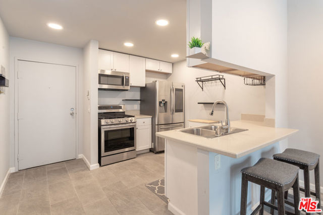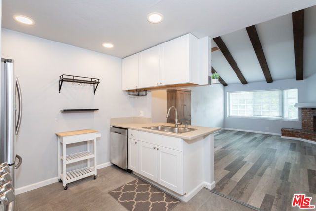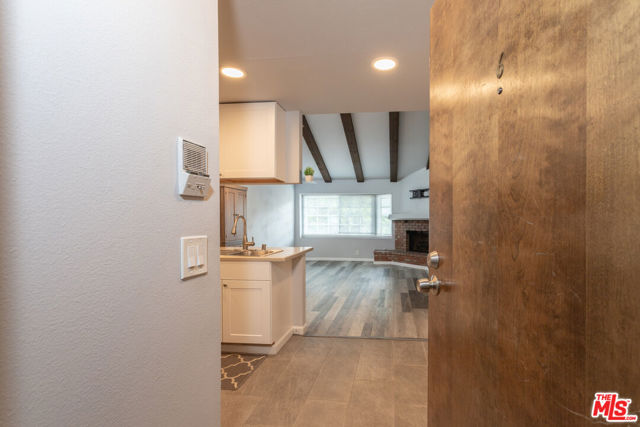 Beautifully remodeled and move-in ready, this unfurnished single is located in a small, quiet, and secure building in highly desirable Valley Village. The unit features modern upgrades and finishes, along with a bright, open, and versatile layout. The spacious living room showcases stylish soaring exposed wood beam ceilings, designer flooring, fresh paint, a ceiling fan, and a charming brick-wrapped gas fireplace perfect for cozy evenings. The updated kitchen is equipped with refinished cabinetry, Corian countertops, ceramic tile flooring, recessed lighting, and brand-new stainless-steel appliances, including a 3-door refrigerator with built-in iPad, range, dishwasher, and stainless-steel sink with modern fixtures. The bathroom has been completely redone with ceramic tile flooring, a contemporary vanity, updated lighting, and a marble-tiled tub/shower combo with built-in shelving. A spiral staircase leads to a lofted area ideal for light storage needs. The unit includes two tandem parking spaces in a gated garage, on-site laundry, and a landscaped grassy front yard. Prime location just blocks from Gelson's Market, John's, Vons, local parks, Universal Studios/CityWalk, and a wide variety of shops and restaurants.