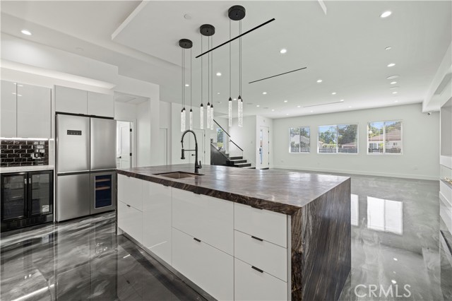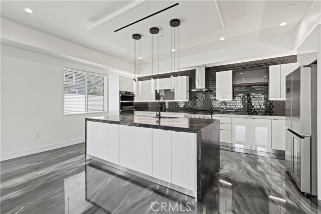 Welcome to this stunning brand-new modern residence built in 2025, located at 15209 Cohasset St, Van Nuys, CA. This contemporary 4-bedroom, 3.5-bathroom home spans an impressive 2,391 sq ft and offers a perfect blend of luxury, comfort, and functionality. Property Highlights: Spacious Floor Plan: Open-concept living with soaring ceilings, perfect for entertaining and everyday living. Gourmet Kitchen: Equipped with top-of-the-line stainless steel appliances, a massive waterfall island with modern pendant lighting, sleek high-gloss cabinetry, and an elegant black marbled backsplash. Elegant Finishes: The home features high-end polished floors with a stunning marble-like effect, recessed lighting, and a built-in contemporary fireplace that serves as the focal point of the living area. Primary Suite: Luxurious master retreat with a private bathroom featuring a dual-sink vanity, a frameless glass shower with matte black fixtures, and modern design details throughout. Additional Bedrooms & Bathrooms: Each room is bright and spacious, with ample closet space and stylish finishes. The bathrooms are tastefully designed with marble-style tile work and illuminated mirrors. Outdoor Space: Enjoy a beautifully landscaped yard with modern drought-tolerant plants, redwood mulch, and a clean, contemporary aesthetic. Parking & ADU Information: The property includes ample parking with designated spaces for both the main house and the rear ADU (Accessory Dwelling Unit). Main House: Access to a covered carport for secure parking. ADU: Rented separately with its own parking area. Driveway: Spacious and designed to accommodate multiple vehicles with ease. Additional Features: Central HVAC system for year-round comfort Energy-efficient windows allowing for plenty of natural light Smart home features and modern lighting fixtures Solar Prime location close to shopping, dining, schools, and easy freeway access This home is ready for immediate move-in, offering a sleek modern lifestyle in the heart of Van Nuys. Don’t miss the opportunity to live in a newly constructed home that combines cutting-edge design with practical living spaces. Contact us today to schedule a private showing and make this stunning residence your new home!