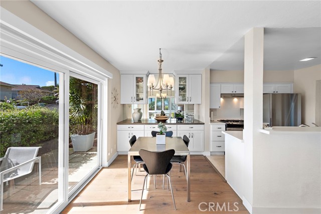 Perched above the renowned Montage resort, this beautifully remodeled one-bedroom, one-bathroom condominium residence with peek ocean view offers the perfect blend of coastal elegance and modern design. Step inside to discover wood and travertine flooring with a thoughtfully designed open-concept layout that seamlessly connects indoor and outdoor living. The stylish kitchen features crisp white cabinetry, gleaming quartz countertops, and stainless steel appliances. The dining nook is complemented by a built-in buffet that matches the kitchen cabinetry for added convenience. The spacious living room opens to a private patio, where you can relax and take in the serene ocean view. The bathroom has been tastefully updated with travertine, a walk-in shower, white cabinetry, and matching quartz counters. The generous bedroom includes a peek-a-boo ocean view and custom California Closet built-ins, while an additional hall closet also features upgraded California Closet organization. Just a short stroll away, you’ll find Lang Park, Treasure Island Park and Beach, Aliso Beach, and the world-class amenities of the Montage Resort. Whether as a serene full-time residence or a luxurious coastal escape, this coastal retreat captures the essence of Laguna Beach living.