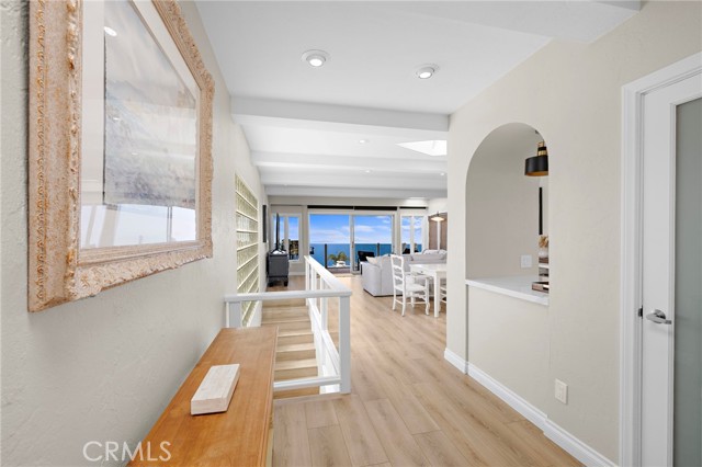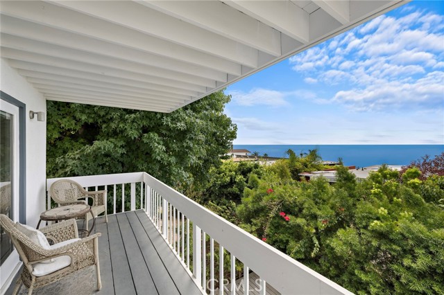 Spectacular Ocean-View Retreat in Laguna Beach Experience breathtaking panoramic ocean views from this exceptional, fully furnished or unfurnished Laguna Beach rental perched high in the desirable Arch Beach Heights neighborhood. This beautifully appointed home offers unobstructed vistas from Catalina Island to Palos Verdes and beyond—perfectly positioned for dramatic sunsets and tranquil coastal living. Step inside to an open-concept main level filled with natural light, soaring beamed ceilings, and sit-down ocean views from the living, dining, and kitchen areas. The remodeled kitchen features granite countertops, custom cabinetry, a walk-in pantry, and a double porcelain sink framed by a charming bay window. Glass doors open to an upper deck with sleek glass partitions—ideal for enjoying coastal breezes and postcard-worthy sunsets. The mid-level hosts an oversized primary suite with its own private ocean-view balcony and generous , soaking tub and good closet space. A second bedroom overlooks a serene courtyard that separates the main house from a detached studio suite with an ensuite bath—perfect for guests or a private office. Downstairs, discover a lush, landscaped backyard retreat with an expansive deck, and an additional private bedroom and bathroom—excellent for use as a home office, gym, or guest suite. Remodeled bathrooms feature stone finishes, tiled showers, and a tub. Warm maple hardwood floors run throughout, complemented by skylights and glass block accents that enhance the natural light. Smart home upgrades include Insteon programmable lighting and a Ring video doorbell for added convenience and security. Located just blocks from Moulton Meadows Park—with tennis, pickleball, a soccer field, and playground—this home offers easy access to the Aliso Wood Canyon Wilderness trails, trolley and bus routes, award-winning restaurants, beach coves, and the vibrant Laguna arts scene. Live the ultimate Laguna Beach lifestyle in this magical coastal retreat with 360° views and modern comforts.