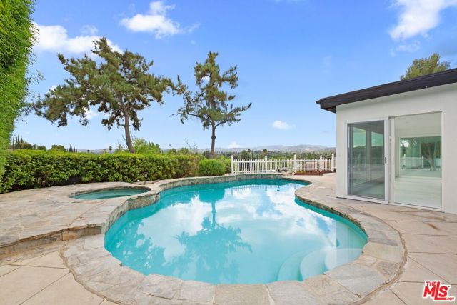 Welcome to this beautifully remodeled single-story residence tucked away on a private cul-de-sac, offering sweeping city light and mountain views. Situated on an expansive 35,000+ sq ft lot, the property features a sparkling flagstone pool and spa, with spacious patio areas for outdoor dining and entertaining. Inside, the home boasts 4 bedrooms with newer flooring and 3 updated bathrooms. The living room features recessed lighting and tile floors, while the formal dining room captures breathtaking views. The kitchen showcases whitewashed cabinetry and tile accents, with seamless flow to the outdoor spaces. Located in the sought-after El Camino Real Charter, Hale, and Pomelo Charter school district, this exceptional home offers comfort, style, and convenience, all within close proximity to parks, shops, and dining. Don't miss the chance to lease this West Hills gem!