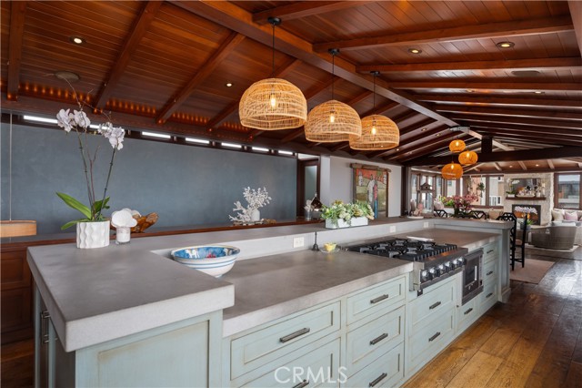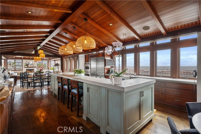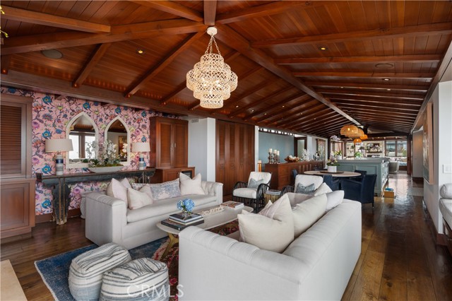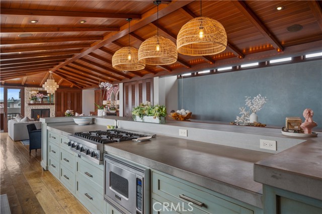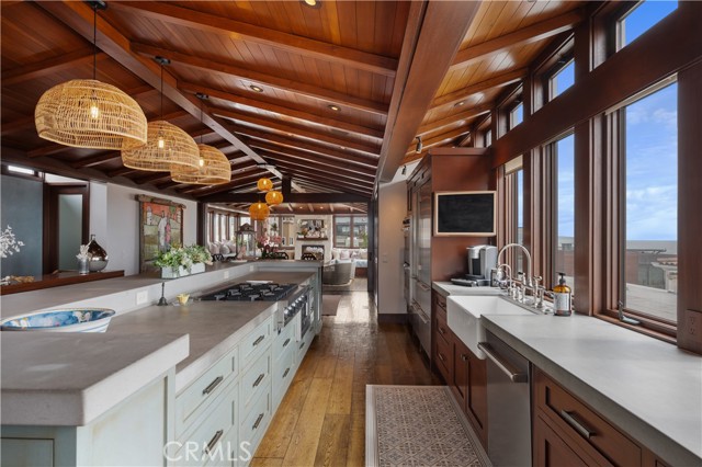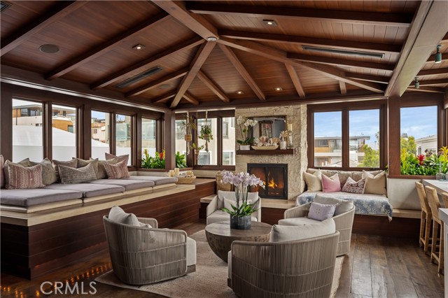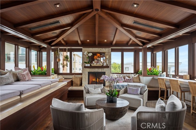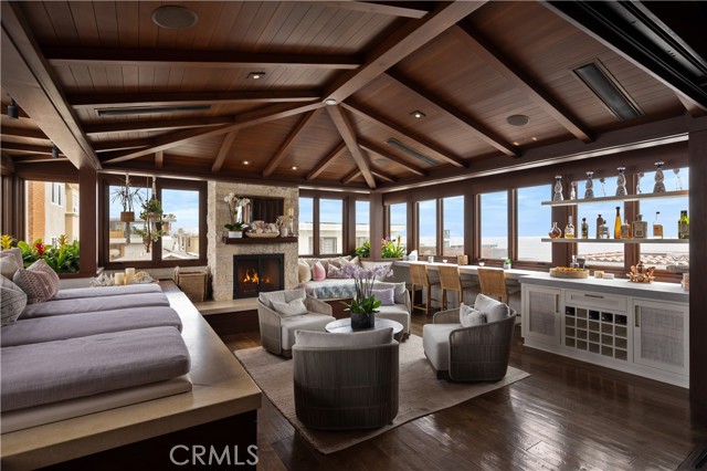 Welcome to 126 4th Street, a stunning coastal retreat in the heart of Manhattan Beach. Crafted by KAA award-winning architects and interiors by Waterleaf, this beautifully designed multi-level home combines modern elegance with beachside charm, offering breathtaking ocean views and luxurious amenities. This expansive 6,000 sq ft property features 4 bedrooms, 6 bathrooms, and a modern tropical design that evokes the feeling of a perpetual vacation. The welcoming front entrance leads to an outdoor patio perfect for entertaining, featuring comfortable seating around a cozy fire pit. The spacious living room boasts large windows with ocean views, a charming fireplace, and elegant furnishings. The gourmet kitchen includes high-end appliances, a gas cooktop island, and custom cabinetry, seamlessly connecting to a comfortable family room and dining area, perfect for family meals and entertaining guests. Multiple balconies provide stunning views of the ocean and the surrounding neighborhood, creating ideal spots for relaxation. The primary suite offers a private sanctuary with dual vanities, and a walk-in shower. Additional well-appointed bedrooms are spacious and tastefully decorated, offering plenty of natural light and comfortable living spaces. The oversized media room is perfect for watching movies, playing games, and is great for kids, teens, and sleepovers. The home gym is equipped with a Peloton and Infra Red Sauna, and additional features include a dedicated office space, a spacious laundry room, and an outdoor shower area perfect for rinsing off after a day at the beach. The 2-car garage provides extra space for bikes, paddle boards, surfboards, beach chairs, and more, along with an electric car charging station. Enjoy the beach bar with a kegerator and a small kitchen, ideal for watching sports and hosting gatherings. With air conditioning and a cleaning crew twice per week, this home ensures a lifestyle of luxury and convenience. Located just steps from the beach, 126 4th Street offers easy access to the best that Manhattan Beach has to offer, including fine dining, shopping, and recreational activities. Experience the best of coastal living in this beautifully appointed home available for lease, where modern amenities blend perfectly with the charm of beachside living.