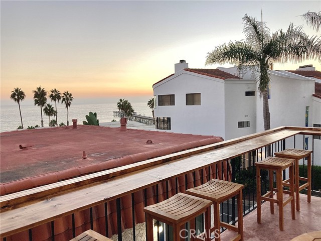 AVAILABLE FEB 1, 2026. SEE, HEAR, and SMELL the ocean from this FURNISHED, beachy, stand alone condo just around the corner from the San Clemente Pier. With no neighbors above or below, this vacation home lives like a single family residence with two parking spaces in the gated underground garage, laundry in unit, fireplace, and sunset bar balcony. Enjoy ocean, palm tree, pier, sunset, and north coast VIEWS from the living, dining, kitchen, and primary bedroom. Take in the intoxicating smell of salt air along with the soothing sound of waves from the unit, or stroll to the restaurants and shopping on Del Mar St.This is the heart of San Clemente in the pier bowl district. Primary bedroom has a King bed while the secondary bedroom has two full beds. Utilities are not included at this rate. Lease term negotiable.Rate may vary depending on length of lease term, time of year, and utilities.Summer monthly rate $9500.