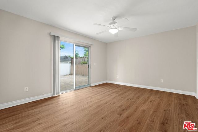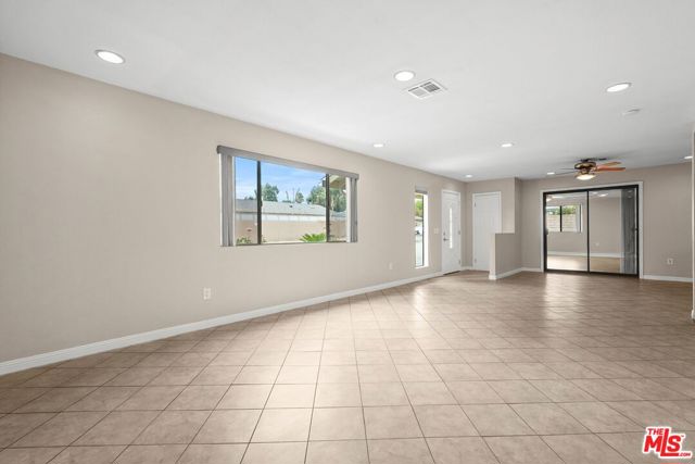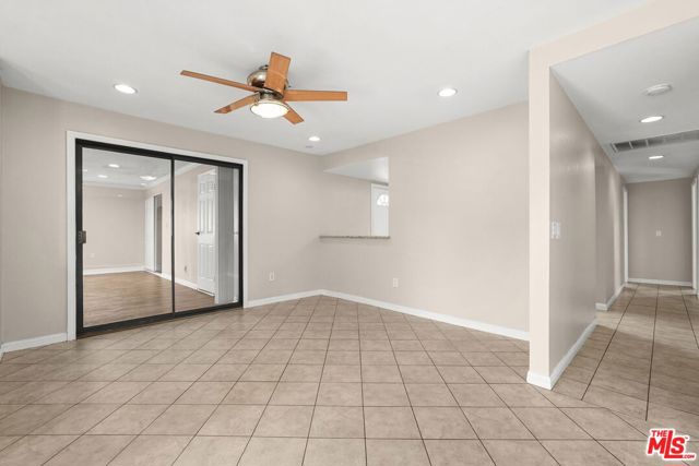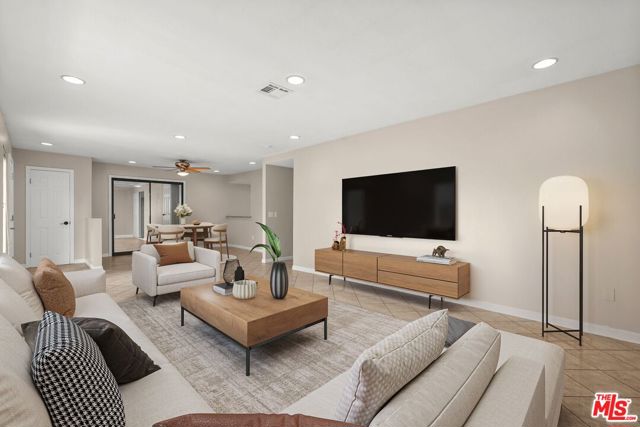 Updated ranch-style home nestled in a peaceful cul-de-sac within a family-friendly neighborhood. Step inside to discover a spacious open-concept living and dining area, seamlessly connected to the modern eat-in kitchen through a stylish pass-through opening-perfect for both everyday living and entertaining. The private primary suite offers a tranquil retreat with its own ensuite bathroom and sliding glass doors that open directly to the backyard, blending indoor comfort with outdoor access. The home also features three additional generously sized bedrooms and a convenient laundry room. Elegant tile and wood flooring flow throughout, adding warmth and sophistication to the space. Outside, the expansive backyard is ideal for entertaining, complete with a large patio and grassy lawn perfect for gatherings, play, or relaxation.