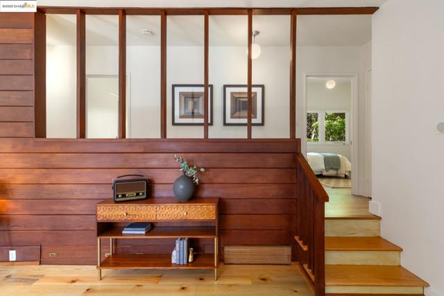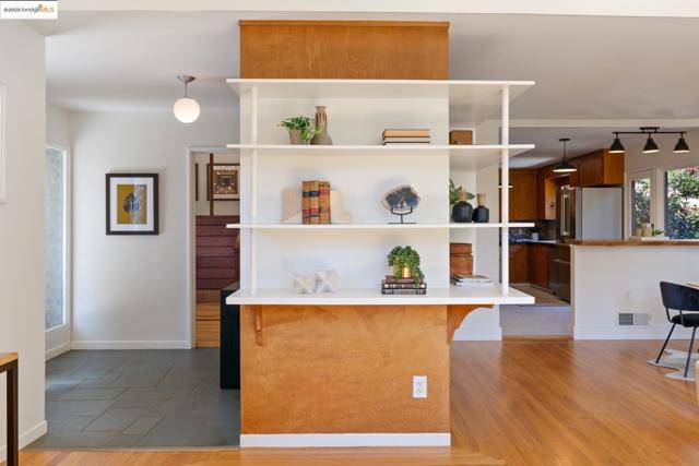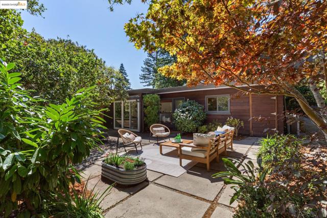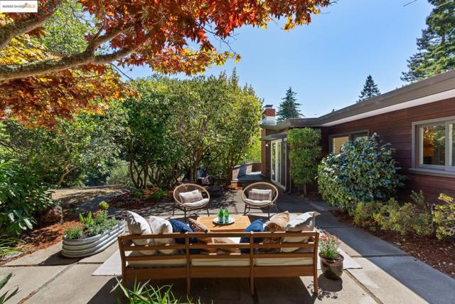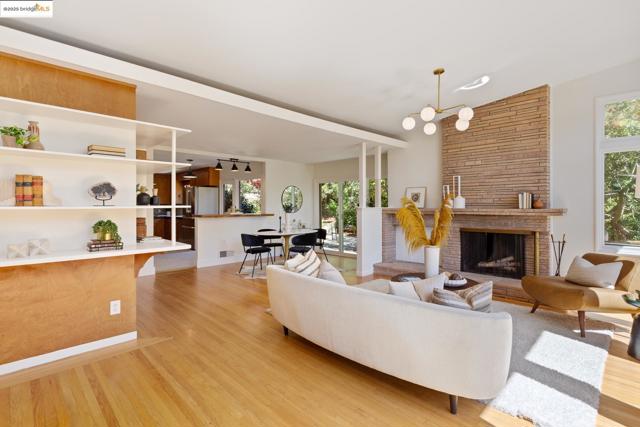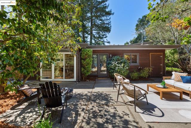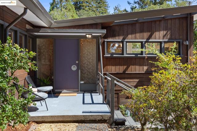 Tucked at the end of a cul-de-sac & backing to Tilden Park, 605 Plateau Dr. is a truly exceptional residence. This custom mid-century modern gem offers a rare blend of privacy, design, and connection to nature on 4 expansive lots totaling 0.79 acres.* With just 2 owners since its creation, this 3 bed, 2 bath home has been meticulously maintained, preserving its authentic architectural character. Inside, you'll find hallmark mid-century elements: clean lines, open spaces, natural finishes, & walls of windows that invite the outdoors in. Original hardwood floors grace the living and dining rooms, while reclaimed heart pine flooring—sourced from historic Treasure Island pylons—adds warmth to the den, hallway, & bedrooms. Two fireplaces bring cozy focal points to the living spaces. The kitchen balances beauty and functionality with wood cabinetry and a striking custom mosaic backsplash. A glass door opens onto the patio, perfect for enjoying seamless indoor-outdoor California living. With 1,919 square feet*, central air conditioning, high-end appliances, and a 2-car carport, the home also features a charming chicken coop, the perfect tree for a swing, and enough land to let your imagination run wild. Though it feels like a retreat, you're just minutes from the heart of Kensington.