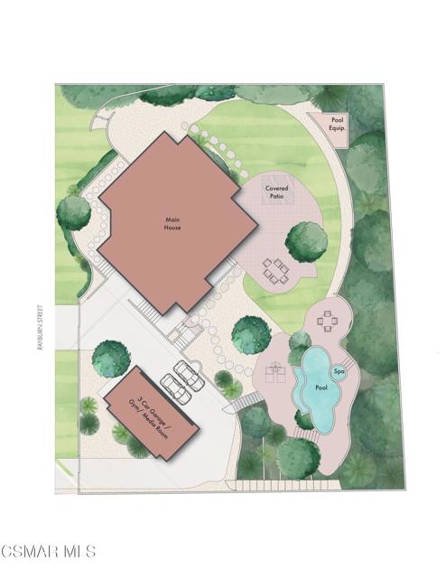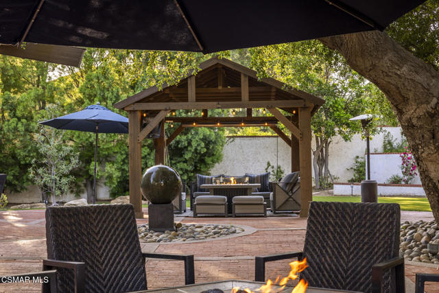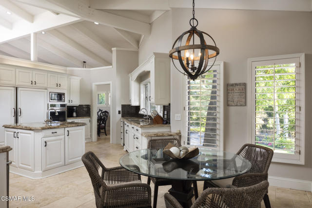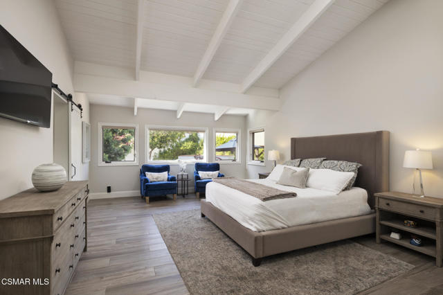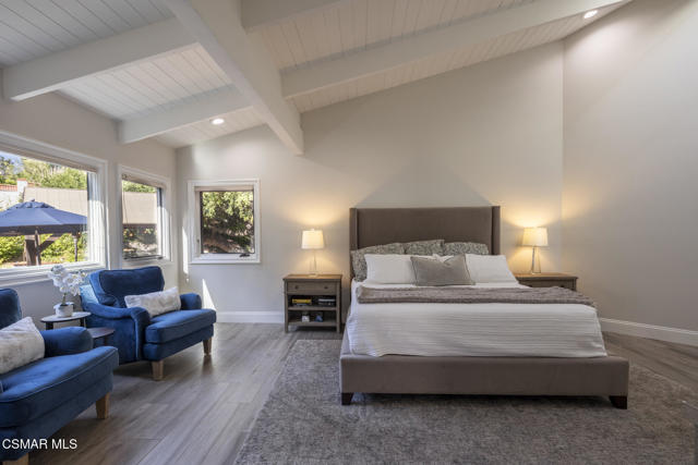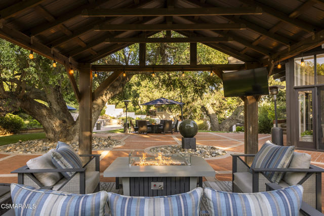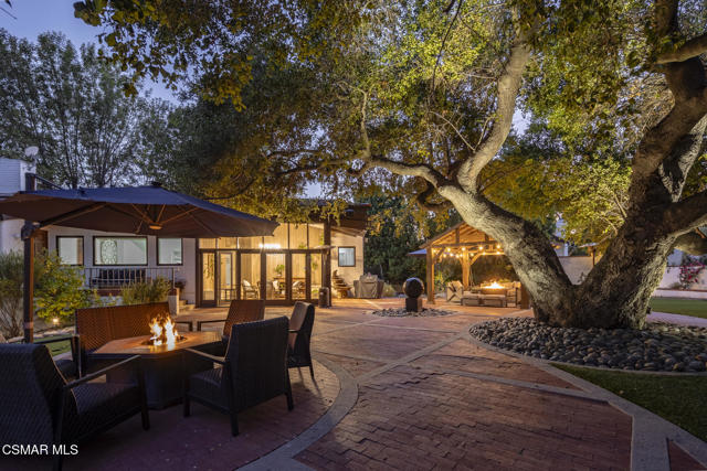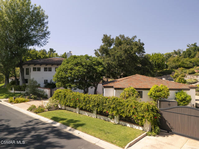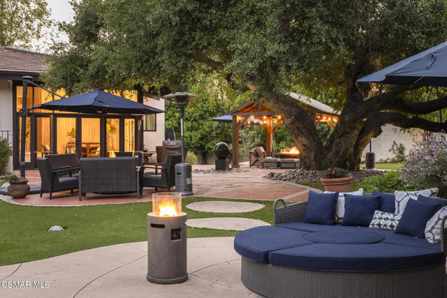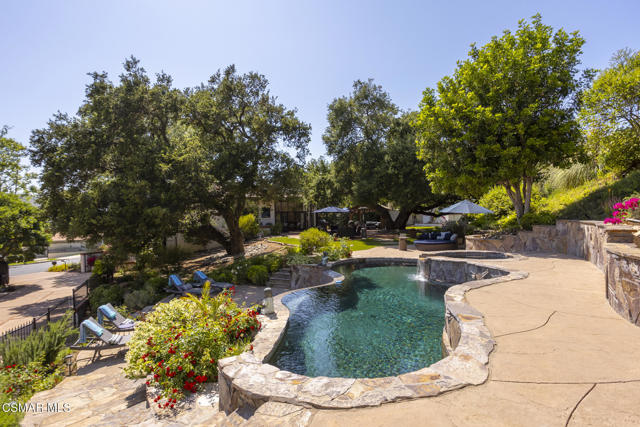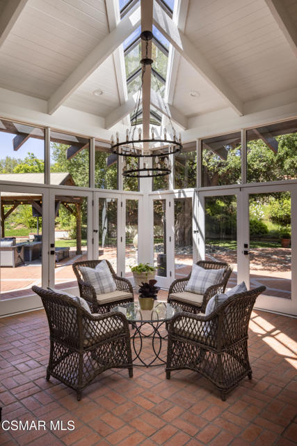 FURNISHED RENTAL! 3 Month Minimum! When the original developer of North Ranch chose his homesite in the mid 1980's, he chose 4525 Rayburn St. Dotted with majestic coastal oaks, the 29,000 SF property offered a unique serenity with a gentle rolling topography affording the architect/builder the freedom to create a genuine sanctuary. Nothing captures the spirit of man's interaction with the natural world than the one of a kind glass pyramid skylight located in the center of the soaring ceiling. The airiness and voluminous space intersect crisscrossing lumber beams, creating a sense of wonder and bliss. The tongue and groove wooden ceiling coupled with the afore mentioned beams, evoke man's connection to nature and the heavens, while the travertine floors anchor the soul to the earth. With more than 4,500 SF, including the sensational glass garden room or the detached 3 car garage/ gym and billiard hall, the space is all encompassing and engrossing. With the primary and a 2nd large ensuite on the main level, plus the kitchen, powder and open family room, this home lives easy and casual while the formal dining room is ready to meet any occasion. The lower level consists of two more bedrooms, a bath, laundry and an open entertainment room which could serve as bed 5 should your needs require it. Stepping through the main level French doors into the garden room, you feel the towering angular glass and wood ceiling, the walls of glass and used brick floor as a transition to the outside world. The yard is park like, with the sound of water cascading from the pool and its tiled water well and the walled yard features a gated circular driveway. The 3 car garage has been converted into a gym and fabulous pool hall replete with bench, barstools and pool table. Behind the garage is a small fruit tree orchard and gardening area. Additional amenities include remodeled baths, stunning millwork, both a built-in refrigerator and separate freezer along with top of the line appliances. Near the prestigious North Ranch Country Club, the finest shopping and both public and private educational opportunities, this gated estate suits everyone from the most down to earth to the most cosmopolitan.