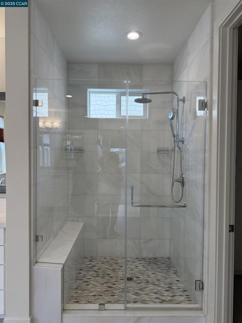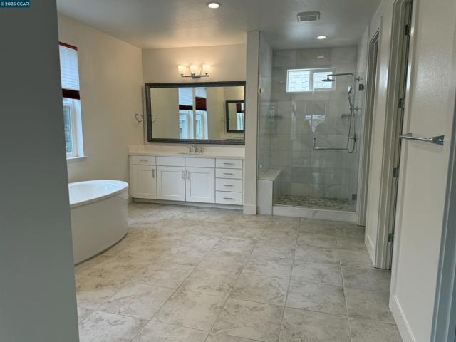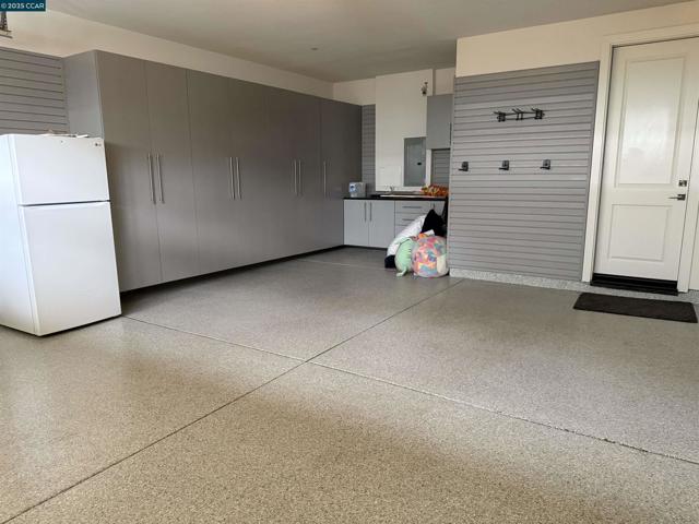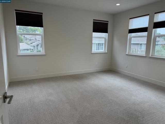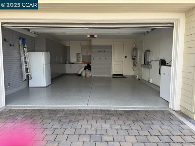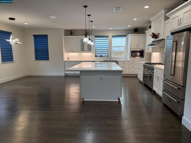 This stunning residence offers all the bells and whistles, starting with a chef’s kitchen featuring Bertazzoni appliances, 6-burner gas stove with griddle, double oven, quartz counters, expansive island, custom floor-to-ceiling cabinetry with glass inlays, and a large walk-in pantry. The spacious great room and nook boasts upgraded wood floors, a cozy gas fireplace, and a sliding door leading to the outdoor living area. A full bedroom and bath on the main level provides flexibility for guests or a home office. Modern energy features include 5.8KW solar (18 panels), 2 Tesla Power Walls, and 220V car charging capability. Additional upgrades: Hunter Douglas blinds, epoxy garage flooring, and built-in cabinetry in the oversized 2-car garage. Step outside to a beautifully landscaped backyard with Travertine and Tan Red Charcoal pavers, flower beds, fruit trees, patio, and porch—perfect for entertaining or relaxing. Ideally located near Blackhawk Plaza shopping & dining, Diablo Vista Park, and top-rated San Ramon Valley schools.