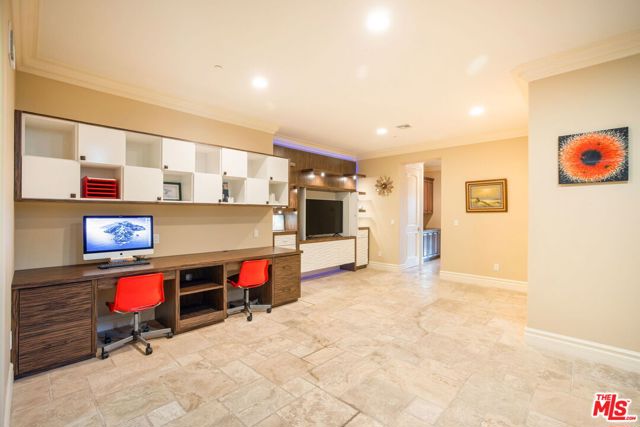 Tucked away within the prestigious enclave of "The Benedict Collection" at the southern tip of Sherman Oaks, this rare estate is one of only seven residences at the end of a tranquil cul-de-sac. Offering sweeping vistas of the San Fernando Valley and beyond, the home embodies timeless sophistication while celebrating the ease of indoor-outdoor California living. The light-filled living room, anchored by a stately fireplace, flows effortlessly to a serene outdoor terrace with captivating city, mountain and lush green views. An adjacent family room and dining room extend into the expansive kitchen and breakfast area, oriented toward the rear terrace and grassy yard ---complete with ample space for a pool. The primary suite features a fireplace and generous bathroom, and connects to a versatile secondary bedroom ideal as a private office, retreat or gym. The lower level is designed for both comfort and versatility, with four additional bedrooms, a spacious open lounge or play area, and a conveniently located laundry room. Direct access to the 4-car garage completes the thoughtful layout. Blending privacy, elegance and views in a beautiful setting, this exceptional residence offers an unrivaled opportunity to own one of Sherman Oaks' most coveted addresses.