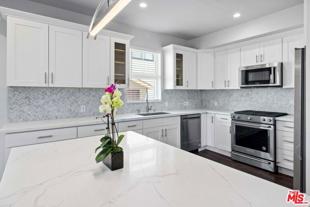 Stunning 3 Bedroom 2 1/2 Bath Luxury Townhouse. This Newly Constructed 2 story condo/ townhouse offers a great bright open space which is perfect for entertaining. The spacious living dining area opens to huge kitchen. The primary bedroom suite features huge restroom with stand up frameless glass shower and jacuzzi tub. First floor features a spacious living dining area which leads to a huge kitchen as well as a laundry area with full size washer/dryer. The bright spacious kitchen has quartz countertops with a large island and stainless steel appliances. Secured Gated 2 car parking. Location, location, location, walking distance to Ralphs, Trader Joes and Walgreens. Stoner Park and various restaurants are nearby as well. Note: Unit 1846, front facing townhouse unit. Some of the photos are virtually staged. Price advertised is for a 2 yr lease term. If signing only 1 year lease, then the monthly rent is $100 higher or $6295 per month Note: New October promotion, for leases with Nov 1 or sooner start date, for min 1 year Lease $6250 for the first 6 months then $6295 per month (next remaining 6 months of 1 year Lease Term)