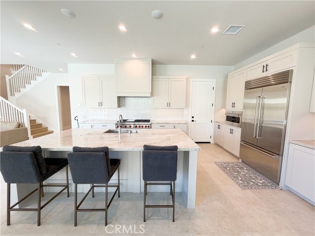 Discover luxury living in this stunning brand-new 4-bedroom, 3-bathroom single family home nestled in the prestigious Olivewood community atop the scenic hills. Offering 2980 sqft of living space, this two-story residence features a paid-off solar energy system, ensuring sustainability and savings. Designed with an open-concept layout, the home is bathed in natural light and adorned with stylish vinyl flooring and high-end interior upgrades. The inviting foyer leads to a spacious living room with sliding doors opening to a serene backyard retreat. The adjacent dining area seamlessly flows into the gourmet kitchen, equipped with premium Sub-Zero and Wolf appliances. An additional scullery kitchenette enhances culinary creativity, making it ideal for home chefs and entertaining guests. The main floor bedroom suite offers convenience and privacy, perfect for multi-generational living or guests. Upstairs, the primary suite boasts breathtaking views, while a versatile loft and two secondary bedrooms complete the upper level. Located in the highly acclaimed Irvine Unified School District, this home is within walking distance to Loma Ridge Elementary (Grade A) and near Jeffrey Trail Middle School (A+) and Portola High School (A+). Residents enjoy resort-style community amenities, including: parks & playgrounds, clubhouses, swimming pools, jacuzzi/spa & BBQ areas, Pickleball & tennis courts, Scenic hiking trails. Conveniently located just one minute from Portola Springs Community Center and CA-241, with easy access to shopping, dining, and entertainment. Ren-to-Own option is welcomed. Schedule a tour today and make this exquisite home yours!