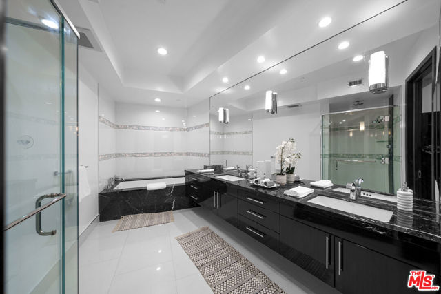 A truly stunning, FULLY REMODELED condo in an impeccably kept, newer building adjacent to Beverly Hills. Elegant, sophisticated and private 2nd-floor home boasts designer finishes at every turn. It is a secluded, east-facing unit with incredible natural light, soaring ceilings, recessed lighting, hardwood floors, crown molding, and gourmet kitchen with granite counters. The open concept living/dining areas flow out onto the tree-lined balcony. There are two ensuite bedrooms with custom-built closets. The spacious master suite has a modern bathroom with dual vanity, oversized closet, soaking tub, and separate shower. There is also a powder room, in-unit laundry, and two secure subterranean parking spots. STORAGE AVAILABLE AT THE PARKING SPACE, FOR AN ADDITIONAL $250/MO. Amenities incl. gym, and outdoor-lounge area. Centrally located, this condo is just 1 min. south of Roxbury Park, and is just a stone's throw away from South Beverly Drive, Century City, Golf, Tennis, restaurants, bars and everything Beverly Hills and the surrounding areas have to offer! It's a GREAT time to invest in and live in Los Angeles: BILLIONS of $ going into Los Angeles development in preparation for the 2026 World Cup & the 2028 Olympics! See attached list of upgrades Owner did to the unit. AGENTS SEE PRIVATE & SHOWING REMARKS!