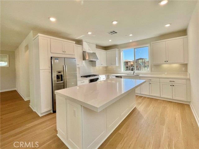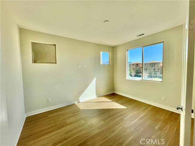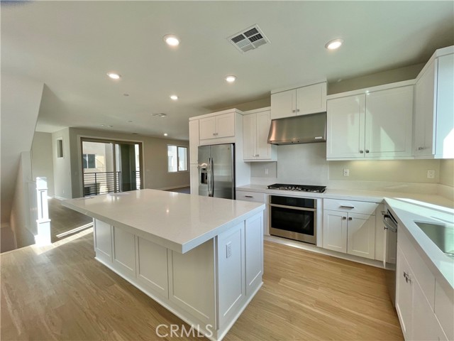 Premium location with beautiful park view! This newer detached home features 2505 sqft, 3 bedrooms and 3.5 baths plus an office. Very bright and light, wood flooring, first floor spacious bedroom with walk-in closet, bathroom with shower, sliding door to the privacy backyard. Second floor is main living space, open floorplan, kitchen with white cabinets, quartz countertop, stainless steel appliances, refrigerator, microwave, gas stove, dishwasher, window overlooking community park and mountain. Living room with deck. An office perfect for work-at-home. On third floor, you will find an expansive primary bedroom with deck, master bath with double sinks, shower, walk-in closet. Community amenities include beach-entry pool, spa, cabanas, BBQ areas, fireplaces with seating, a turf play area, pickleball courts, etc. Saddleback valley unified schools, close to freeways, Spectrum shopping center. This home is a must see!