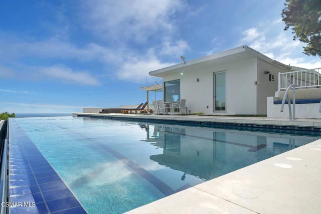Located on the pinnacle of the desirable Sunset Mesa community, this striking contemporary beckons with panoramic ocean, coastline and mountain views throughout. The modern and updated kitchen boasts beautiful Lapis Lazuli stone and snow white marble, along with top of the line appliances. The welcoming floor plan offers high ceilings and a great room that opens to the custom outdoor entertainment area. Enjoy the amazing sunsets from various outdoor seating areas, including a fire pit. Other features include a freshwater indoor/outdoor aquarium wall, a putting green and an amazing 60 foot lap pool. An incredibly flexible floor plan offers the opportunity to lock off a separate 1 Bd + 1 Ba apartment with living area and full kitchen. This magnificent home offers a very quiet, private and serene setting while being conveniently situated minutes away from wonderful beaches, shopping and dining.