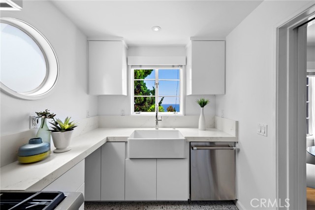 Welcome to your Laguna Beach escape in the heart of Woods Cove. This beautifully furnished, single-level home blends timeless architectural character with relaxed coastal living. Perched on a quiet cul-de-sac just three blocks from the sand, the property offers sweeping ocean views and easy access to the vibrant HIP District’s boutiques, restaurants, and laid-back beach-town vibe. Step outside and stroll to some of Laguna’s most beloved beaches, including Woods Cove, Pearl Street Beach, and Moss Point—each known for their natural beauty, tidepools, and dramatic coastline. Whether you’re looking for a peaceful morning walk, a swim in the cove, or a sunset picnic, the shoreline is always close by. The residence showcases distinctive Streamline Moderne design with curved stucco walls, porthole windows, and nautical-inspired details—offering both charm and a sense of history. Inside, the open layout is designed for comfort and connection, whether you’re enjoying a quiet morning or hosting sunset gatherings. The spacious front deck frames endless ocean vistas, while the terraced backyard creates a private escape surrounded by mature fruit trees. Perfectly appointed for flexible living, this home is offered fully furnished and available on a month-to-month basis—making it an ideal short-term retreat, seasonal getaway, or transitional home. Style, comfort, and location come together here, just moments from Laguna’s iconic beaches..