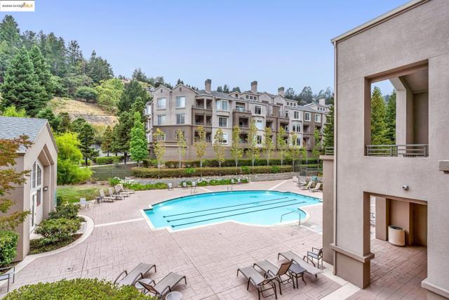 Step inside this beautifully updated 1-bedroom, 1-bath home in the desirable Parkwoods community and immediately feel the openness of vaulted ceilings and walls of natural light. The spacious living area flows to a private balcony—ideal for morning coffee or evening relaxation. The bedroom offers a quiet retreat with double windows that frame the greenery outside, adding both light and privacy. Upgraded flooring runs throughout, while the kitchen features granite countertops and the bathroom is finished with elegant stone flooring. The home also includes the rare convenience of an EV charger in the garage. Parkwoods offers gated entry, a pool, spa, fitness center, and clubhouse, all with easy access to Rockridge, Montclair, BART, and major freeways—making this home both serene and highly connected.