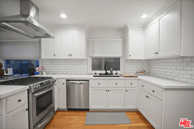 Beautiful 3 bedroom single story home located on a serene, tree-lined street in prime Sherman Oaks! Situated in one of the best areas for schools and family life, this picturesque residence is a perfect blend of classic character and modern upgrades, offering a true oasis of serenity and privacy. Step inside to find hardwood floors, a separate living room & spacious family room (featuring a charming double-sided fireplace), along with a large primary suite with a walk-in closet. The kitchen boasts quartz countertops, ample storage, an additional breakfast nook, and stainless steel appliances. The formal dining room is another perfectly separated space, great for special occasions. French doors let in tons of natural light and lead to a lushly landscaped backyard, ideal for summer BBQs and outdoor gatherings. The detached garage has been transformed into a private living space, making it perfect for an office, exercise room, or artist retreat. The home has also been equipped with Solar panels (paid off, not leased) and TWO Tesla power walls! Don't miss the opportunity to own this fantastic Sherman Oaks home!
