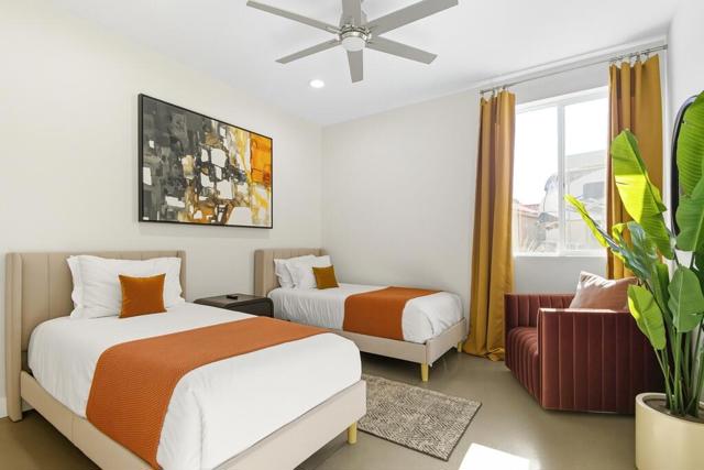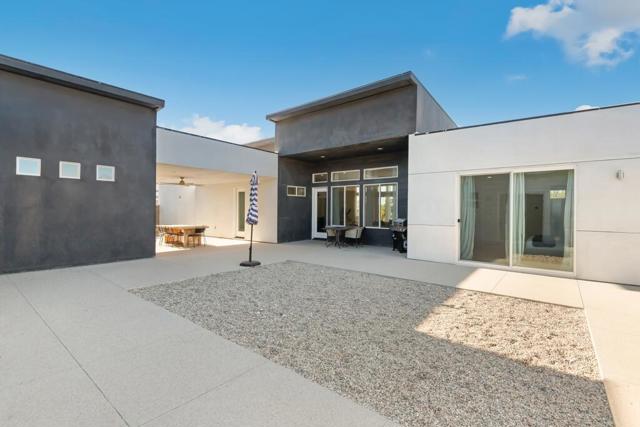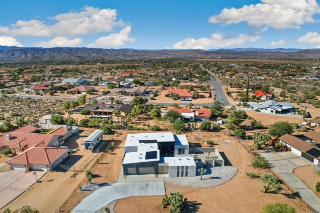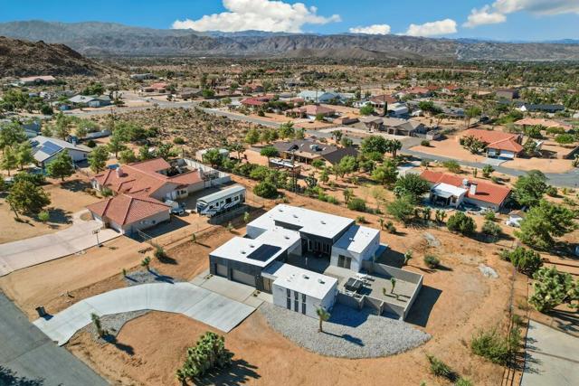 FULLY FURNISHED ANNUAL RENTAL!Enter into modern desert luxury with this custom home! This 4-bedroom, 4.5-bath home (including the private casita) blends style, comfort, and flexibility. Behind a custom gate, enjoy a spacious enclosed courtyard with multiple outdoor gathering areas--perfect for entertaining or relaxing under the desert skies. Inside, the dramatic open living room features soaring ceilings + designer finishes, and an entertainer's dream kitchen with a large quartz island and premium stainless steel appliances. Additional highlights include a 3-car garage, RV parking, and eco-conscious upgrades such as 10 paid solar panels and a tankless water heater. After a day exploring Joshua Tree National Park, unwind on your private courtyard patio while enjoying breathtaking sunsets. Ideal as a personal retreat or short-term rental, this home delivers modern luxury and desert living at its finest--don't miss this rare opportunity!
