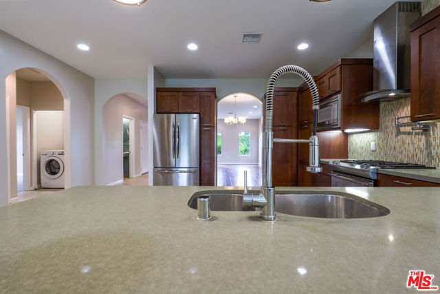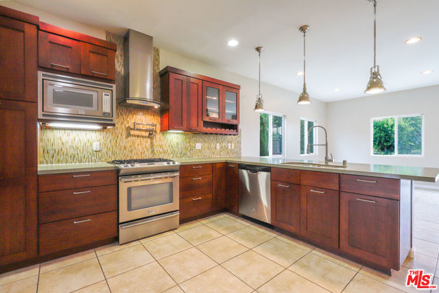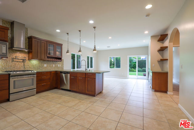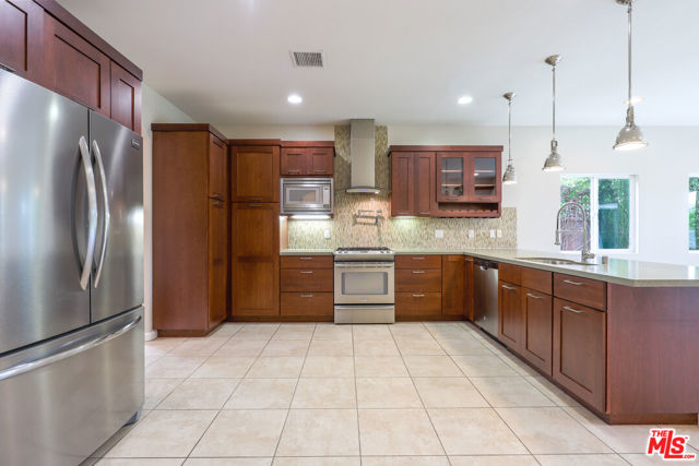 Built in 2011, this beautifully crafted Spanish-style 3-bedroom, 2.5-bath home offers custom finishes and thoughtful design throughout.Step into an open floorplan that welcomes you with a spacious formal living room and elegant dining area, both featuring rich hardwood floors. The chef's kitchen is a true centerpiece, showcasing stunning Caesarstone countertops and top-of-the-line stainless steel appliancesincluding a double-door refrigerator, gas range with custom hood, dishwasher, and microwave.The kitchen flows seamlessly into a bright and inviting great room with a cozy fireplace and sliding glass doors that open to a lushly landscaped backyard perfect for indoor-outdoor living. The primary suite also opens to the yard and includes a full-size walk-in closet with custom built-ins, plus a luxurious ensuite bathroom with a soaking tub and dual sinks. Two additional generously sized bedrooms each offer ample closet space and share a well-appointed full bath. Additional features include a convenient half bath, front-loading washer and dryer, central heat and air, recessed lighting, a large rear patio ideal for grilling, and a 2-car garage with direct access to the home. Located in desirable Rancho Park, you're just minutes from Century City Mall, Westwood Blvd's shops and restaurants, and everything the Westside has to offer.