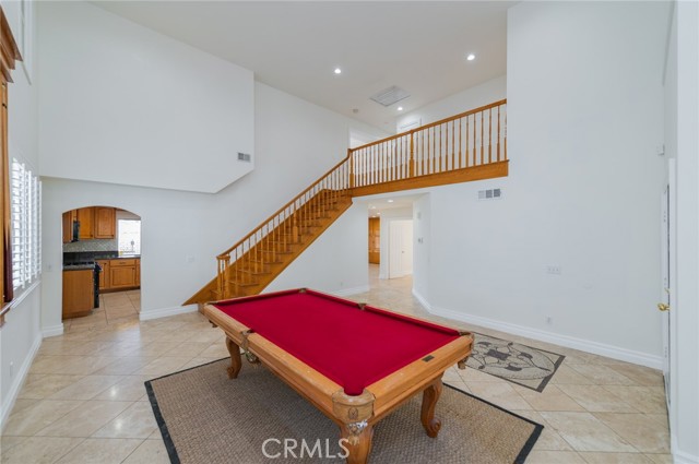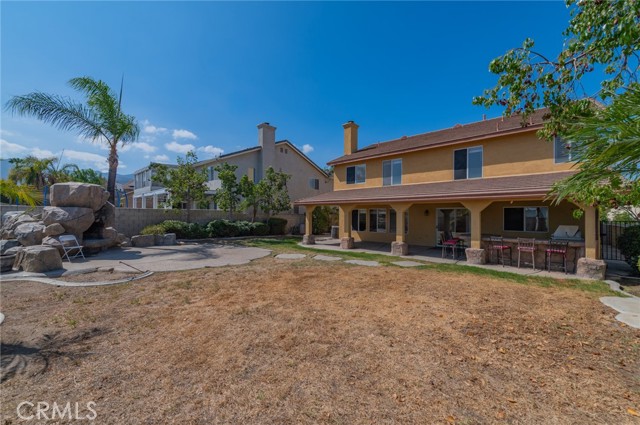 Beautiful Turnkey home has a large Rock outdoor fireplace, built-in BBQ, a covered patio that runs the length of the house all on a large flat lot with block walls around the entire lot and no neighbors behind you and a city view -- perfect for entertaining and those summertime BBQs! As you walk inside this home there are dramatic soaring cathedral ceilings and the inside has been totally upgraded with Travertine flooring throughout the downstairs, custom Wood staircase and stairs, plantation shutters throughout the house, remodeled kitchen with granite counter tops, custom built-ins around the granite woodburning fireplace in the large family room. There are a downstairs bedroom and bathroom, three car garage and an indoor laundry room downstairs. The master bathroom has been completely remodeled with a soaking tub, separate shower with custom tile, dual sinks with granite counter tops, there are two additional bedrooms with a bathroom plus the master bedroom and a large bonus room upstairs. it is perfect home for a family. it will not stay long on the market!