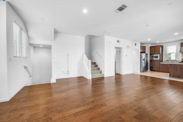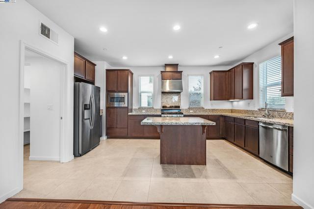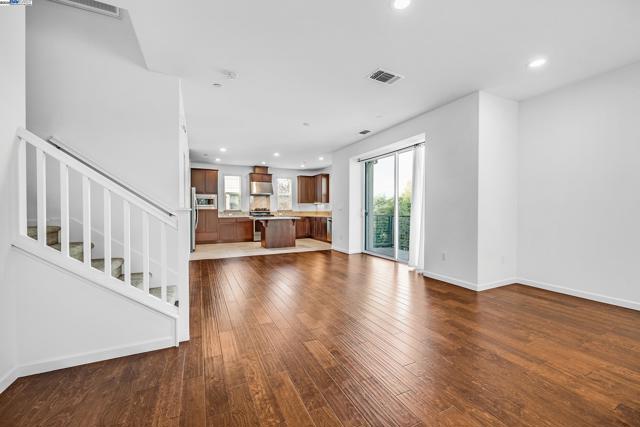 Welcome to this beautifully upgraded townhome-style condo in the desirable Blackstone neighborhood at The Cannery, in the heart of the Bay Area. This bright and airy home features an open-concept layout with stylish laminate flooring in the living and dining areas, cozy carpeting in the bedrooms, stairways, and hallway, and tile flooring in the entryway and bathrooms. The spacious great room opens to a private balcony, perfect for relaxing. Enjoy cooking in the gourmet kitchen with a large center island, rich dark walnut cabinetry, granite countertops, stainless steel appliances, and a walk-in pantry. Each bedroom includes its own en-suite bathroom. A convenient first-floor bedroom and full bath are ideal for guests or a home office. The large primary suite offers a walk-in closet and spa-inspired bathroom. Additional features include an attached two-car garage and a tankless water heater. Located in a family-friendly community with parks and playgrounds, and offering easy access to Hwy 880/580, BART, AC Transit, and Amtrak. Close to restaurants, shops, parks, library, theater, farmer’s market, DMV, post office, and Alameda County offices. A perfect place to call home!