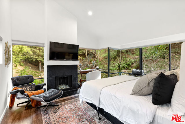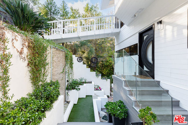 Tucked behind a privacy gate and up a private 200-foot driveway rests this charming Benedict Canyon hideaway, positioned amidst mature trees and lush vegetation. Live a lifestyle in divine harmony with nature and views of verdant greenery from every room. Inside, wide-plank floors lead from each space to the next as large picture windows and walls of glass welcome natural light within. A greenhouse breakfast nook is adjacent to the remodeled kitchen, with its beautiful center island, dazzling backsplash, stainless-steel appliances, bright white cabinetry, and on-trend fixtures and finishes. The formal living room is centered by a decorative fireplace and offers wraparound views of the grounds and the surrounding hillside environment. The primary suite is a serene refuge and has a bathroom with dual-sink vanity and separate shower and jetted tub as well as a walk-in closet. Other bedrooms provide a unique, comfortable treehouse feel reminiscent of summer camps and family vacations. There is also a remodeled guest house with kitchenette, side patio, and bathroom. Numerous outdoor amenities include grassy lawns, rolling hills, meandering cobblestone pathways, a built-in barbecue, pool, spa, lounging decks, water features, and plenty of spaces to relax and dine al-fresco. Welcome home! Also available for sale.