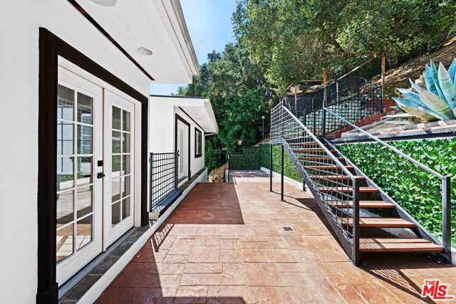 This gated, move in ready, retreat in Beverly Crest Hills combines luxury and convenience, having been renovated late 2023. It features a welcoming motor court and an open floor plan filled with natural light. The main floor offers a formal dining room with a fireplace and a nice courtyard for outdoor dining. Upstairs, the spacious primary suite includes its own fireplace, a luxurious bathroom, and a large walk-in closet. Additional bedrooms provide access to a multi-level outdoor space ideal for entertaining, and the property includes an attached guest apartment suite. This home is a serene escape, conveniently located near downtown Beverly Hills, the Glen Center, major studios, and top-rated schools.