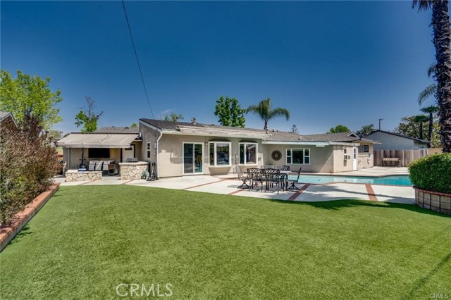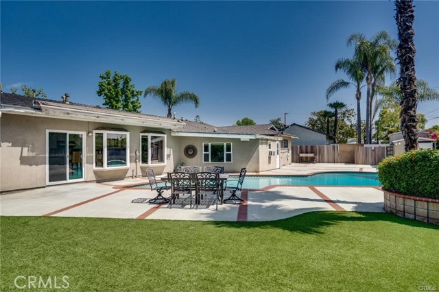 Welcome to 17922 Romelle Ave, located in highly sought after neighborhood in North Tustin area. This beautiful POOL home offers 4 bedrooms, 3 baths, an office, over 2400 sqft of living space, great curb appeal & 11,600 sqft lot with space for large gatherings. The elegant family room features high ceilings, marble fireplace, hardwood flooring & a large skylight offering great natural lighting. The “entertainers” kitchen features travertine flooring, custom cabinets, granite countertops & backsplash, large walk-in pantry, upgraded stainless steel appliances, double oven, large kitchen island, and extra large windows with great views of the resort like backyard - ideal for entertaining! The master bedroom is generous in size & offers a large walk-in closet. The 4th room is located on the opposite side of the home offering plenty of privacy & 3rd bathroom. The long hallway features custom built in shelving & a skylight for natural lighting. The gorgeous entertaining backyard features a sparkling pool, artificial grass easy to maintain, built-in Bbq with direct access into garage, large shed, & plenty of room for a party. Other features include built-in cabinets in garage, whole house water softener, ceiling fans in every room, indoor laundry with sink, automatic pool filler, crown molding throughout, & much, much more! Close to schools, shopping, and freeways.