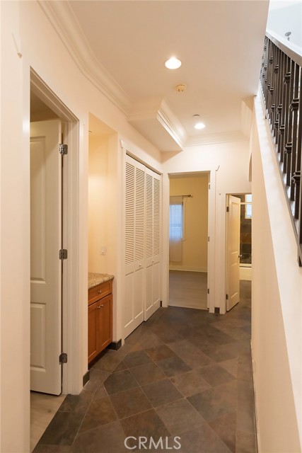 Beautiful 4 bedroom townhome with 2 bedrooms upstairs and 2 bedrooms downstairs. Lower level where entry has 2 bedrooms, 1 hallway bathroom, washer dryer closet, and garage. Upper level has living room, dining area, kitchen, primary bedroom, half bathroom for the guest, and the 4th bedroom that can be used as a 4th bedroom, den/ office. Hardwood floors and Travertine Flooring.